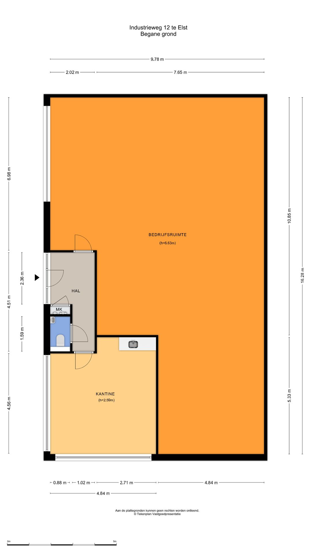 Op uitstekende locatie (en dito zichtlocatie) op bedrijventerrein 'De Aam', nabij NS-station Elst en de snelwegen A-15 en A-325 gelegen hoogwaardig afgewerkte bedrijfshal met kantoorruimte, entresol en 5 eigen parkeerplaatsen op het verharde buitenterrein. Deze bedrijfshal is volledig geïsoleerd en beschikt over een totaal vloeroppervlak van ca. 160m².