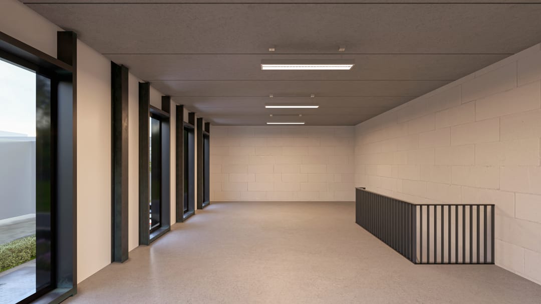 - Een betonnen, gevlinderde begane grondvloer met een veranderlijke vloerbelasting van 1.500 kg/m² en een