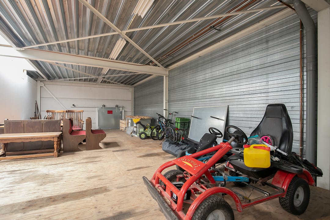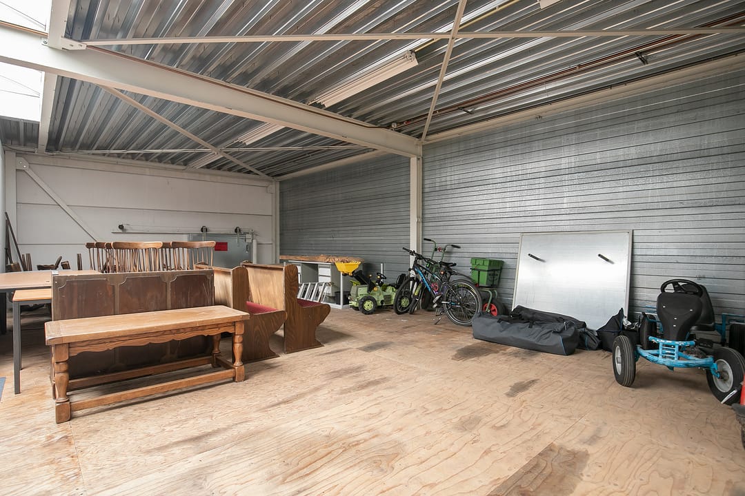 - Lichtstraten, overheaddeuren, krachtstroom, betonvloer, heater, toilet, pantry, inbouwarmaturen en te openen ramen