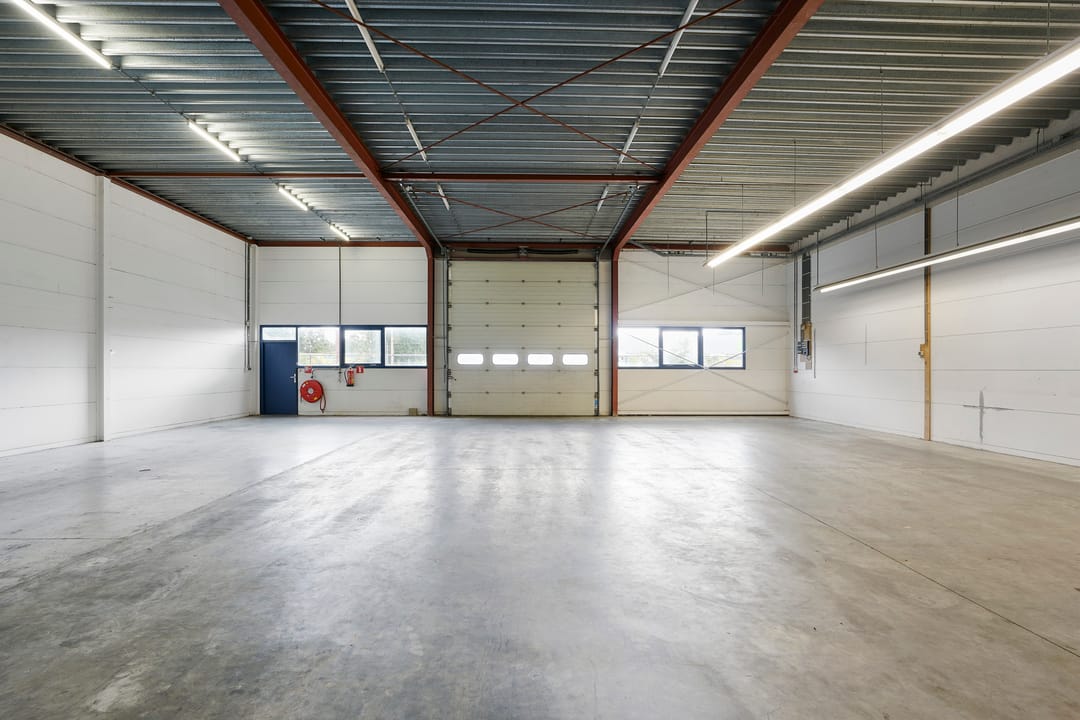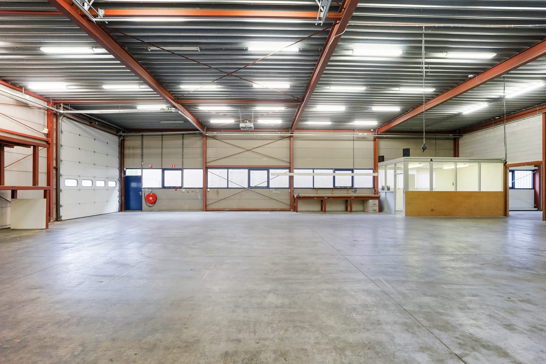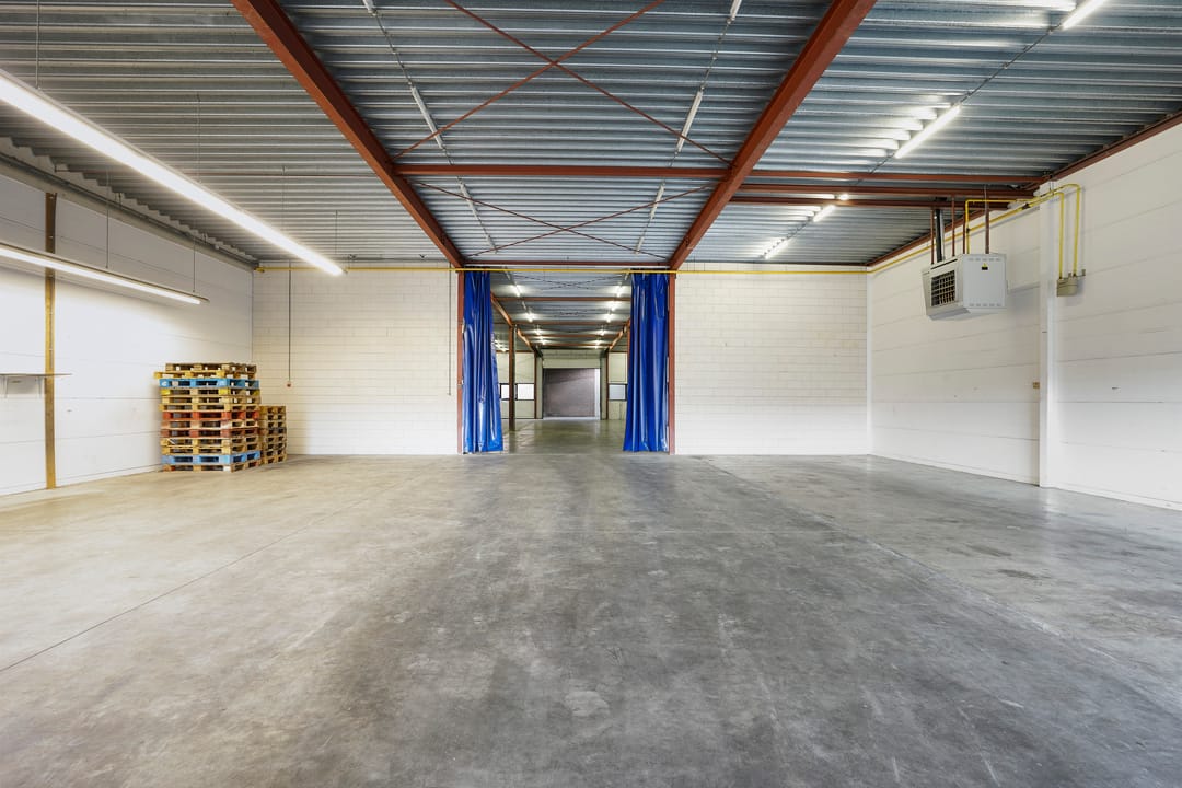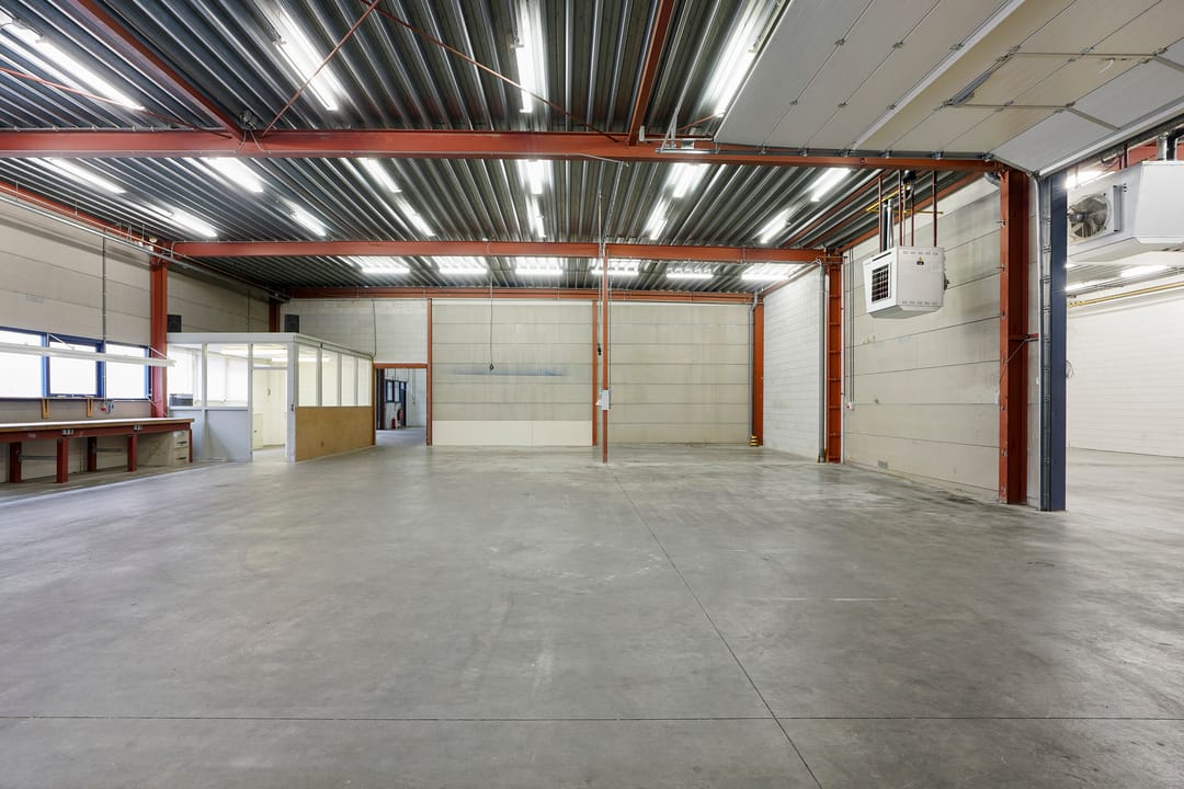- Lichtstraten, overheaddeuren, krachtstroom, betonvloer, heater, toilet, pantry, airconditioning, inbouwarmaturen en te openen ramen