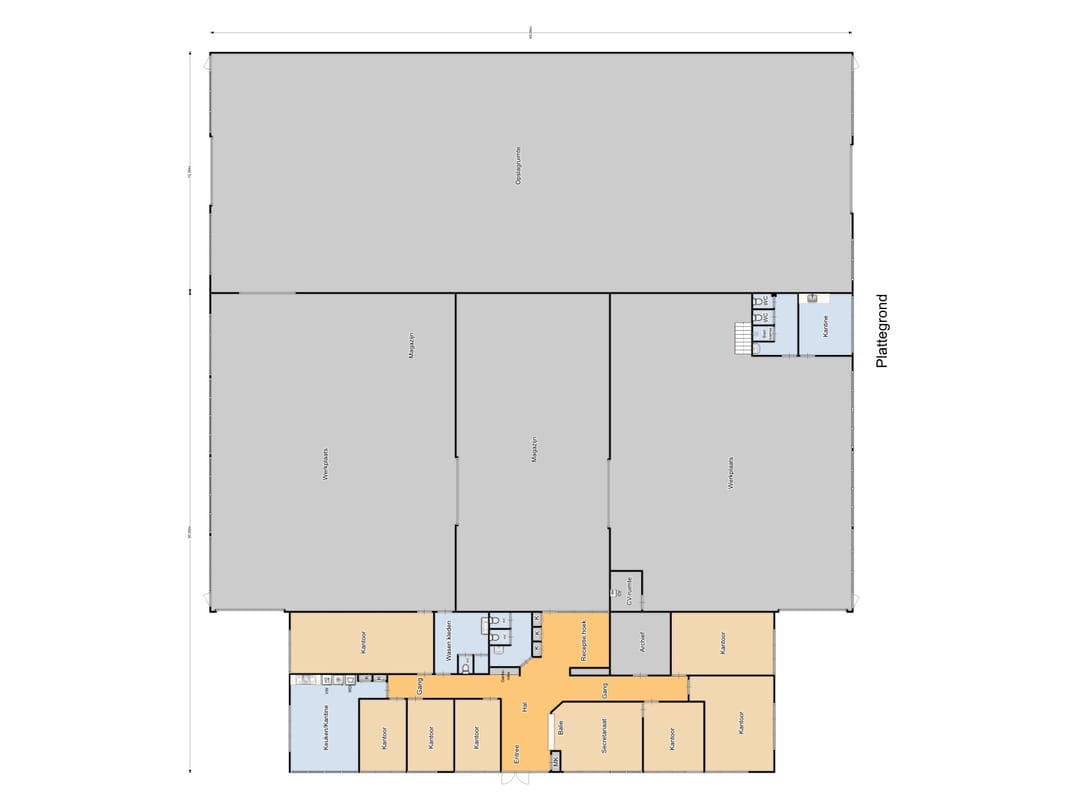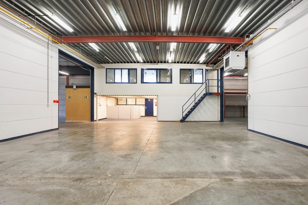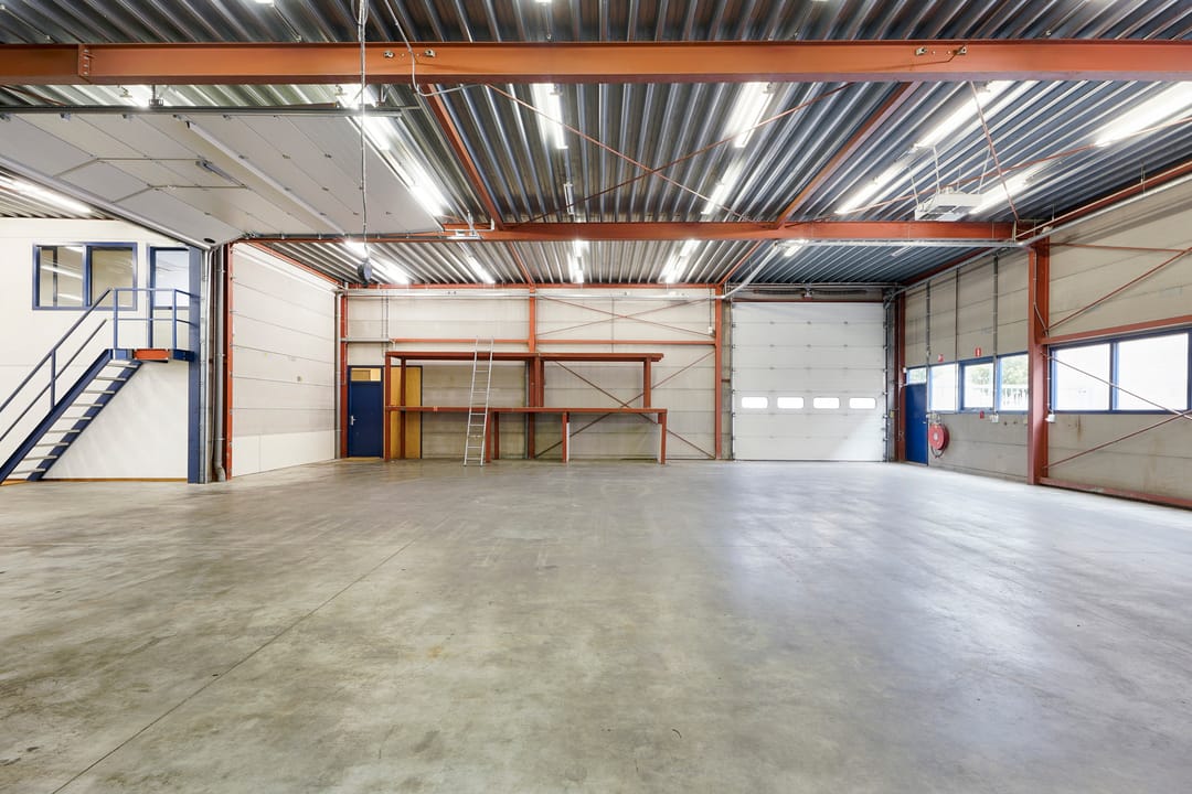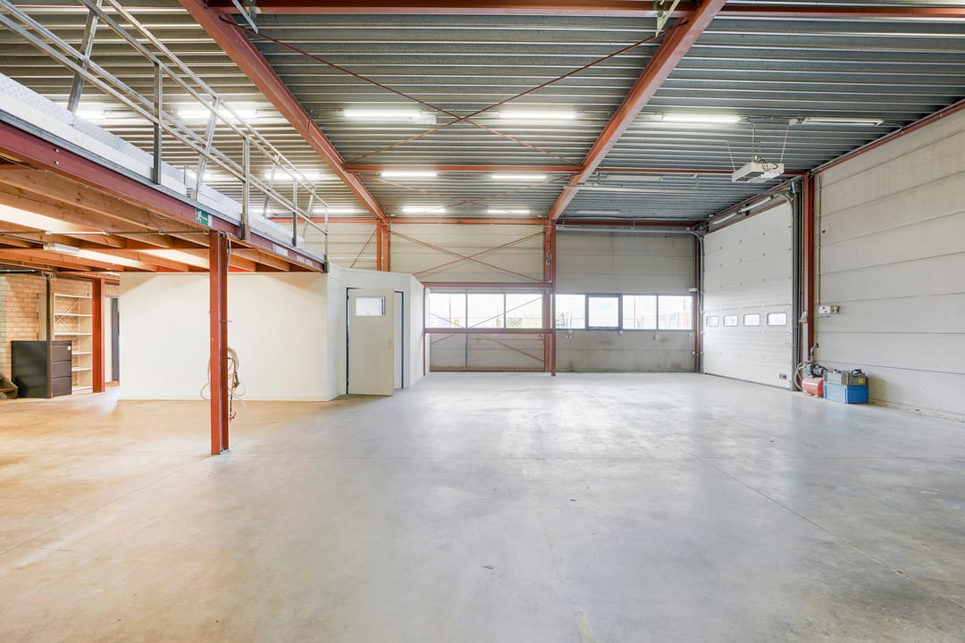 - Lichtstraten, overheaddeuren, krachtstroom, betonvloer, heater, toilet, pantry, airconditioning, inbouwarmaturen en te openen ramen