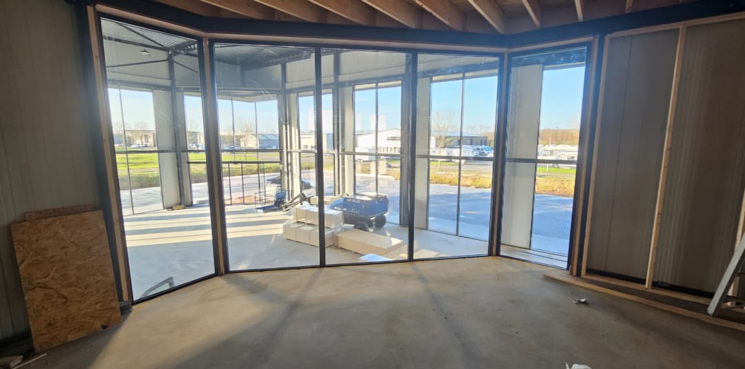 - kantoren met glazen wandpartijen;