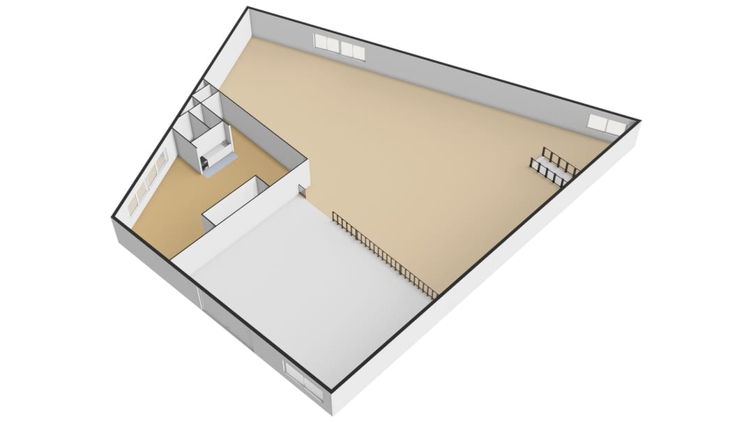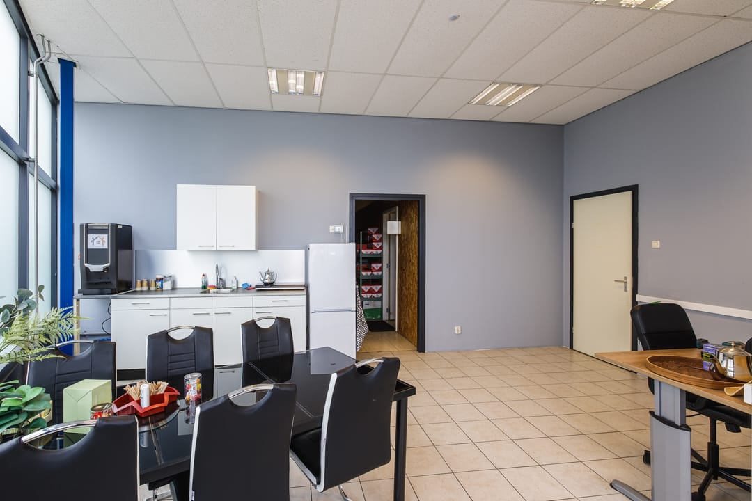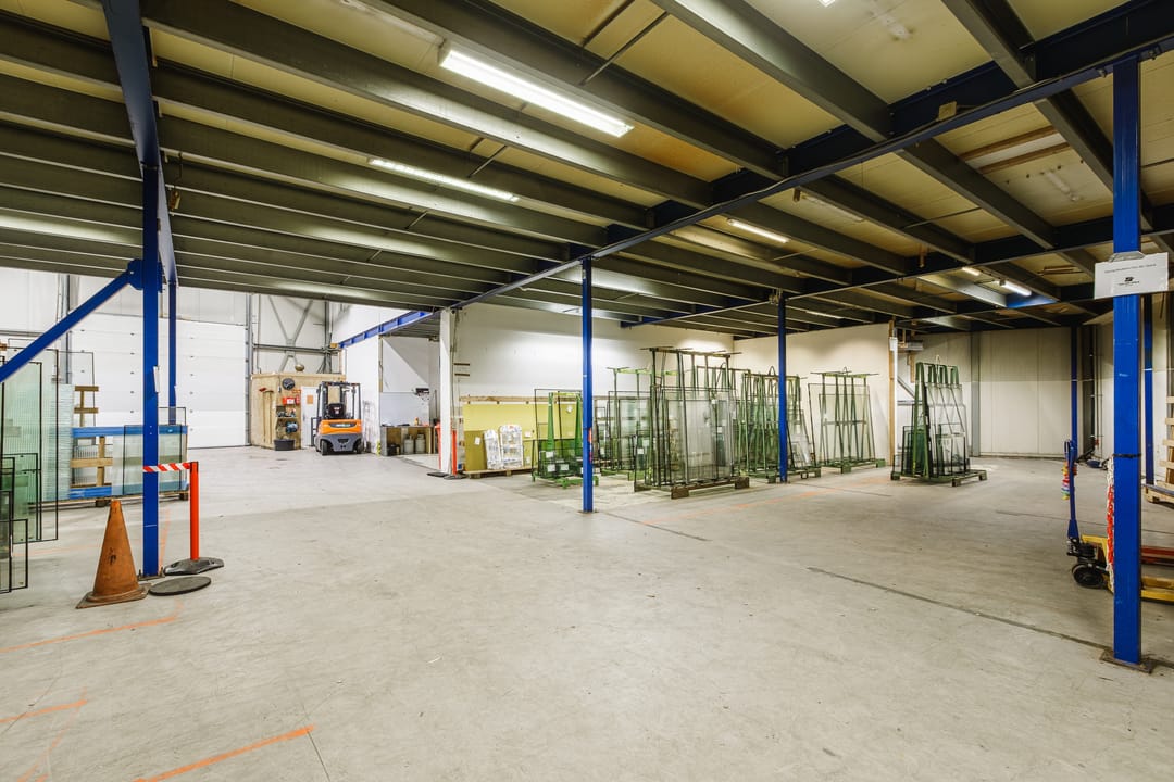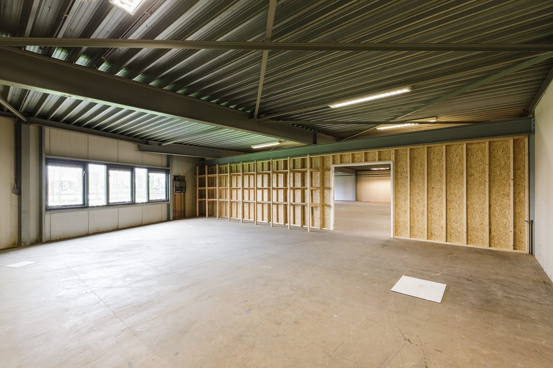 - Lichtstraten, overheaddeuren, krachtstroom, betonvloer, sprinkler, toilet, inbouwarmaturen en te openen ramen