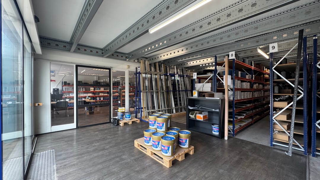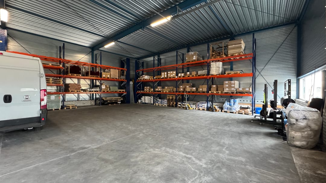 - Overheaddeuren, betonvloer, heater, toilet en pantry