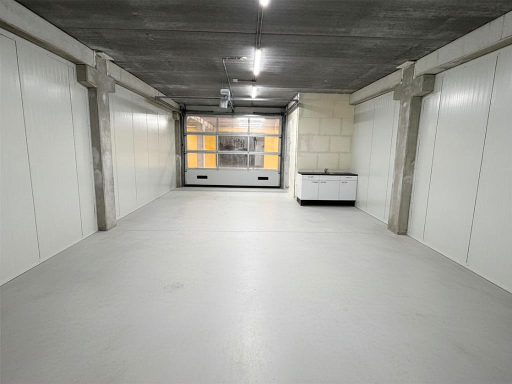 • Elektrische overheaddeur (bedienbaar met afstandsbediening) van 3,8m breed en 2,8 m hoog;