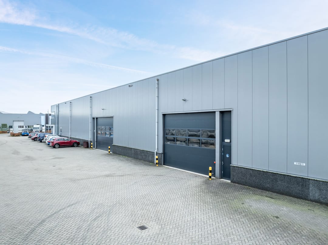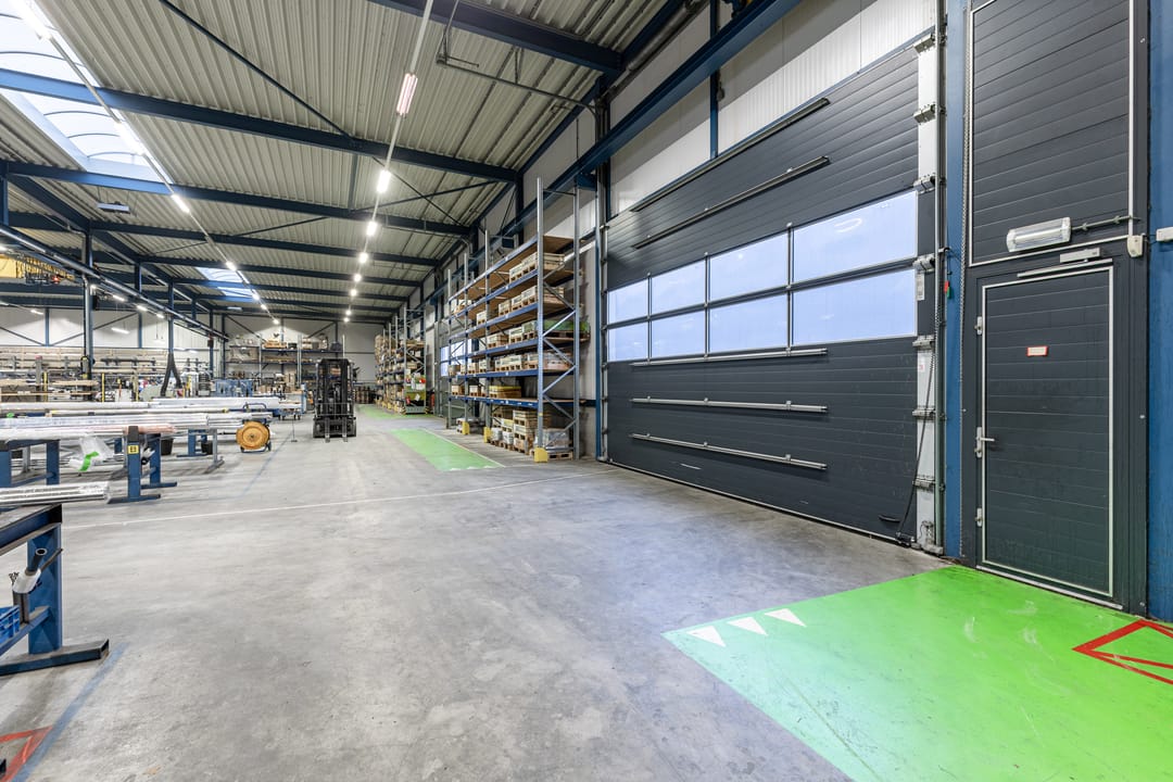 - twee elektrisch bedienbare overheaddeuren in de zijgevel met de afmeting van 6 meter breed en 4,5 meter hoog, met separate loopdeur;