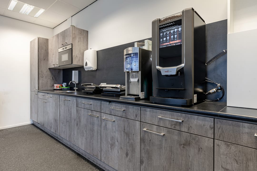 - kantine met complete keukeninrichting waaronder ITHO Daalderop close-in boiler en vaatwasser;
