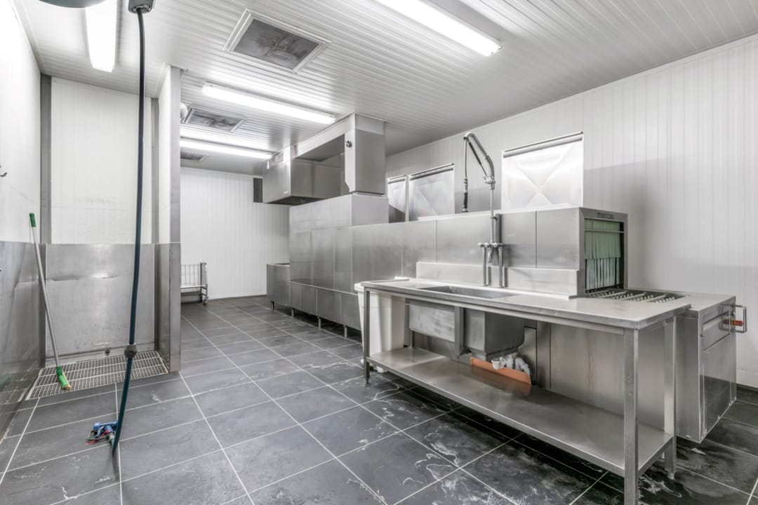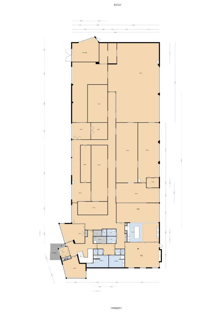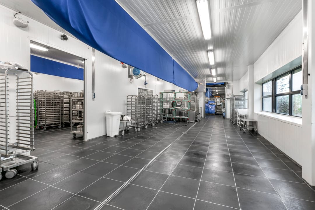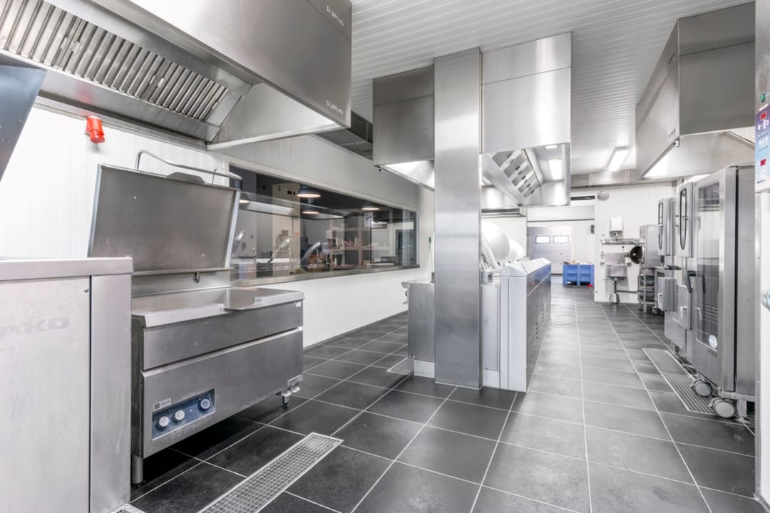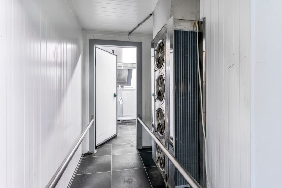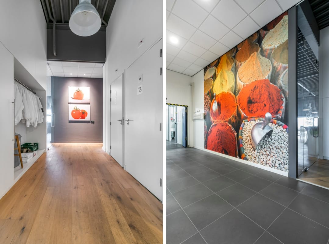 Entree/ontvangsthal met toegang tot het kantoor, bedrijfsbureau, dames- en heren kleedruimtes met toiletten, de productieruimte met koelsysteem en diverse opslagruimten. De productieruimte is voorzien van 4 elektrische overheaddeuren. Op de begane grond zijn tevens een demokeuken, de verpakkingsruimte en diverse koel- en vriesruimten gelegen. Op de eerste verdieping bevinden zich 3 kantoren, voorzien van laminaatvloer en airconditioning.