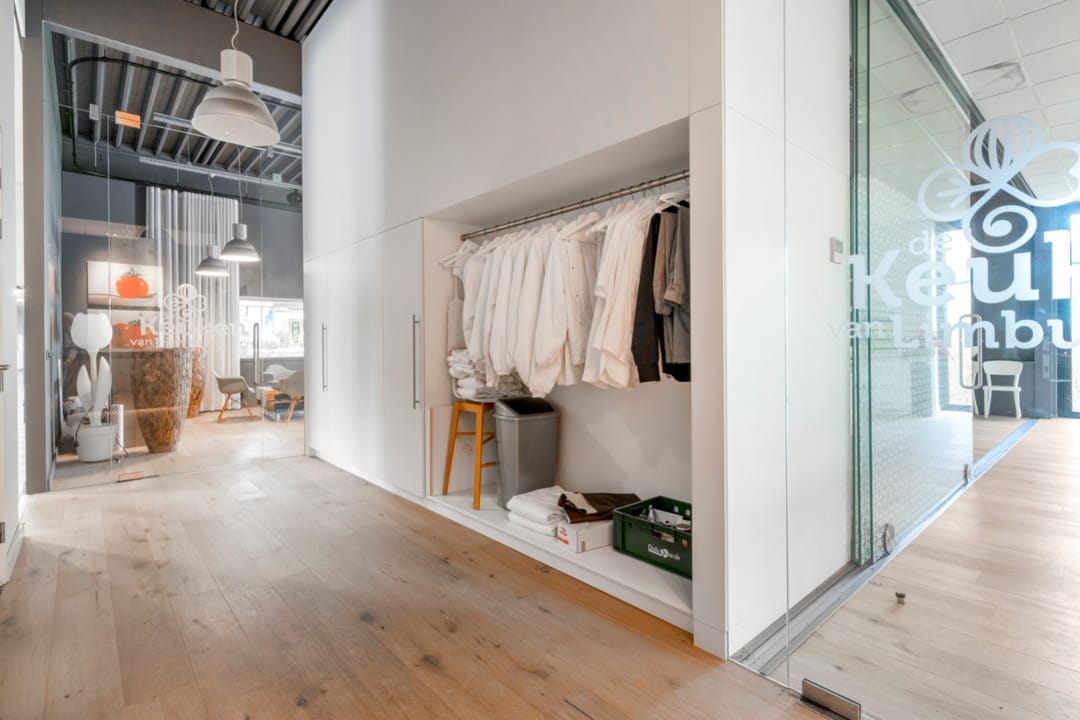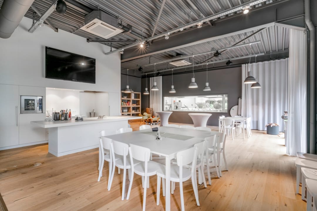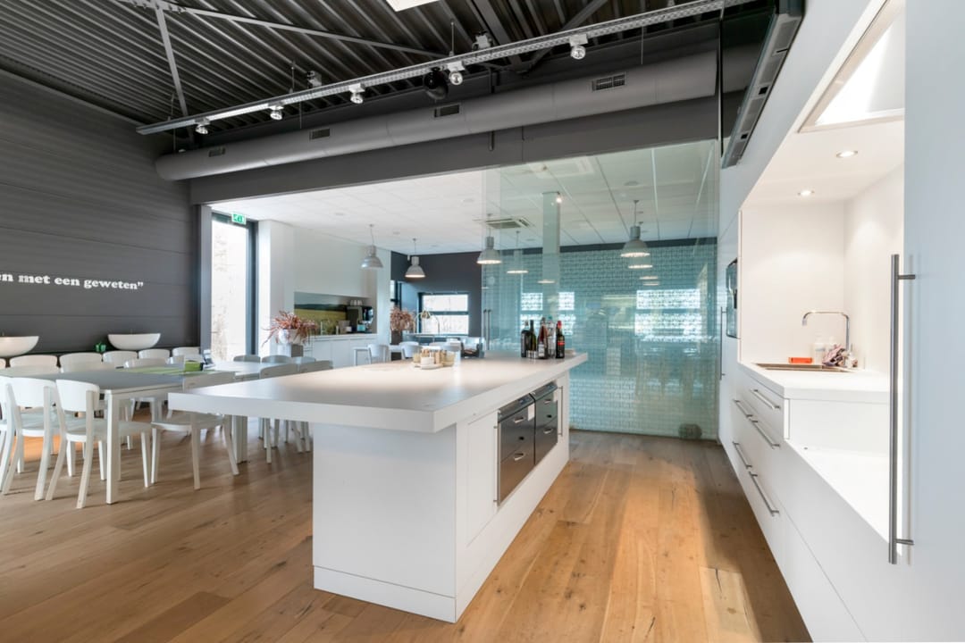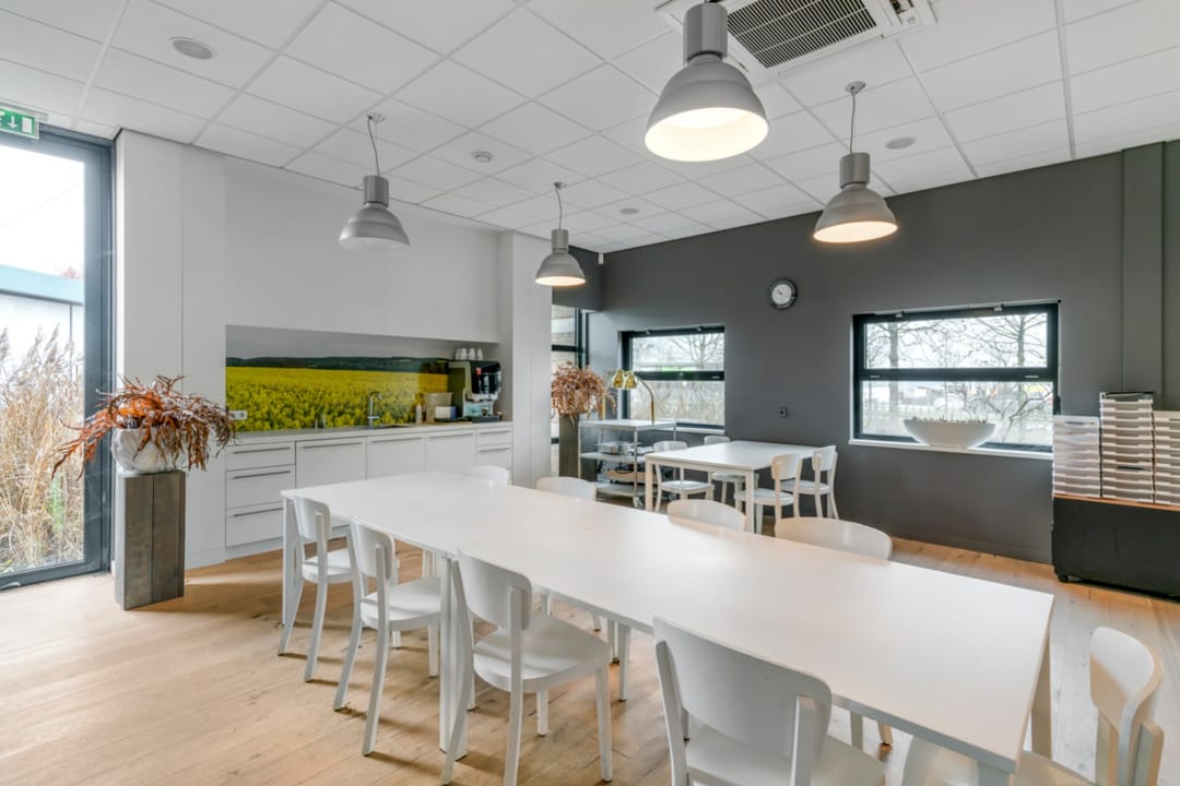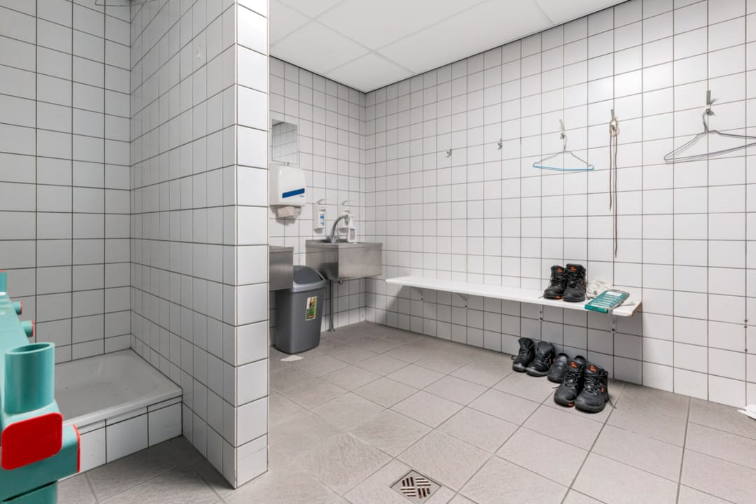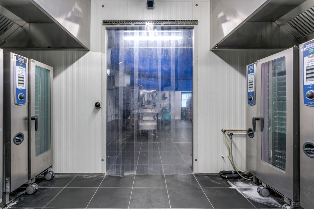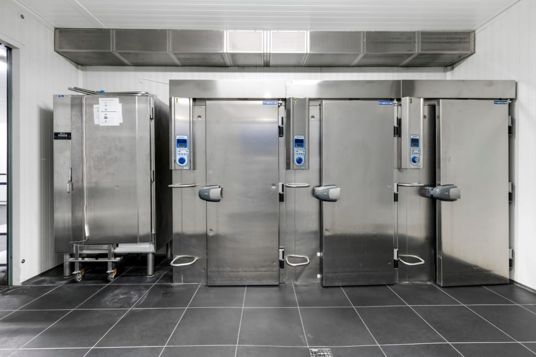 Entree/ontvangsthal met toegang tot het kantoor, bedrijfsbureau, dames- en heren kleedruimtes met toiletten, de productieruimte met koelsysteem en diverse opslagruimten. De productieruimte is voorzien van 4 elektrische overheaddeuren. Op de begane grond zijn tevens een demokeuken, de verpakkingsruimte en diverse koel- en vriesruimten gelegen. Op de eerste verdieping bevinden zich 3 kantoren, voorzien van laminaatvloer en airconditioning.