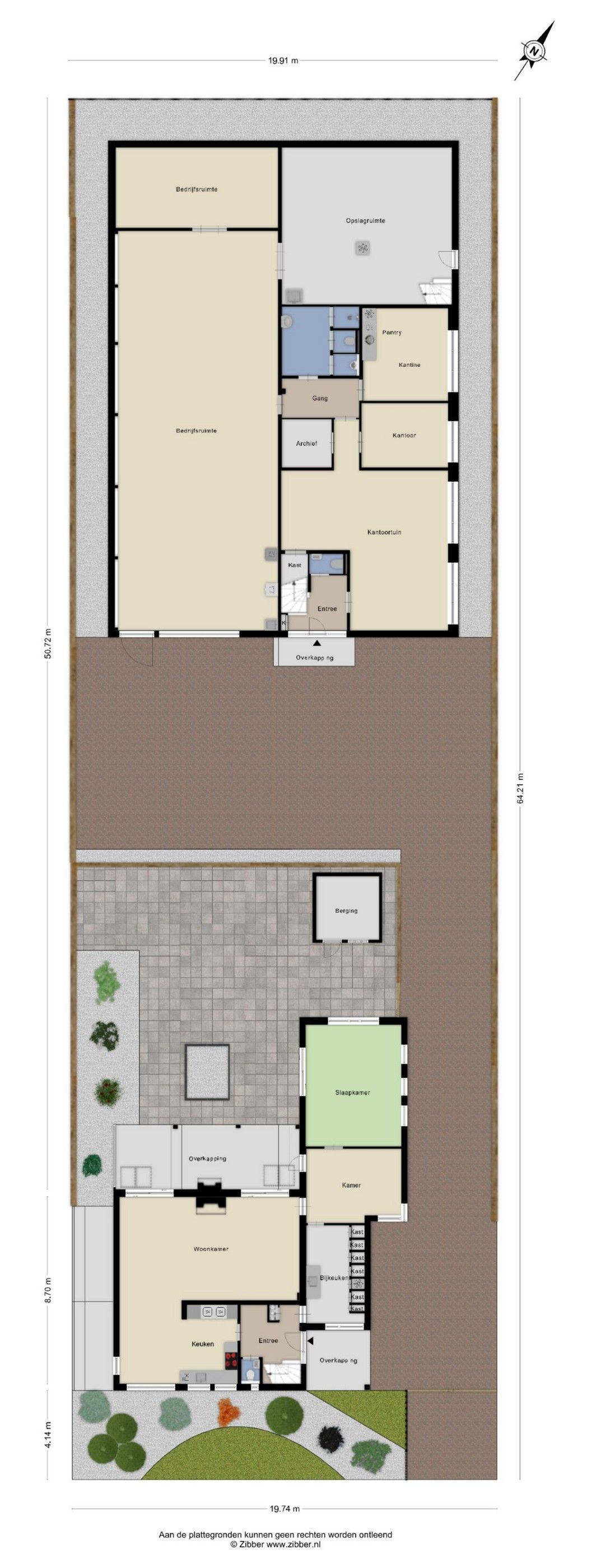 Entree, kantoor, archief, kantine, kleedruimte en toiletten (begane grond): circa 117 m²