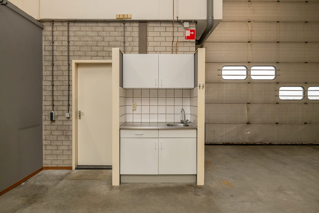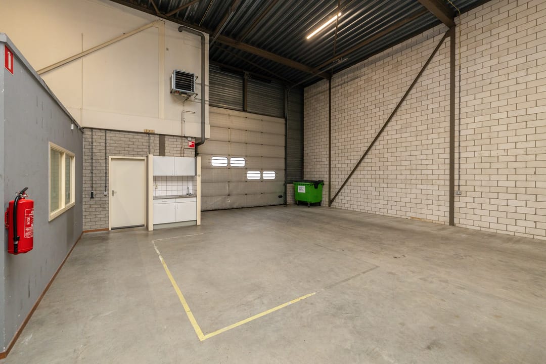 De bedrijfsruimte kent een oppervlakte van circa 280 m² wat in combinatie met de vrije hoogte van circa 6,30 meter en de aanwezige lichtstraat zorgt voor een courante hal voor bijvoorbeeld opslag maar waar het daarnaast ook uitermate plezierig werken is. Door de ruime bestemming van het pand (hier zijn bedrijven toegestaan tot en met categorie 3.2 van de Staat van Bedrijfsactiviteiten) is er een scala aan bedrijfsactiviteiten mogelijk op deze locatie waarbij gedacht kan worden aan opslag, productie, werkplaatsactiviteiten, of een combinatie hiervan. De bedrijfsruimte is voorzien van een grote overheaddeur waardoor ook vrachtauto's gemakkelijk naar binnen kunnen rijden. Verder is de ruimte ook bereikbaar via de separate loopdeur. In de hal is thans nog een aparte cabine aanwezig die dienst doet als kantoor- kantineruimte. Deze is echter los op de vloer geplaatst en zou dus ook verwijderd kunnen worden. Tenslotte bevindt zich in de hal nog een pantry en is de ruimte uitgerust met verlichting en verwarming door middel van een heater.