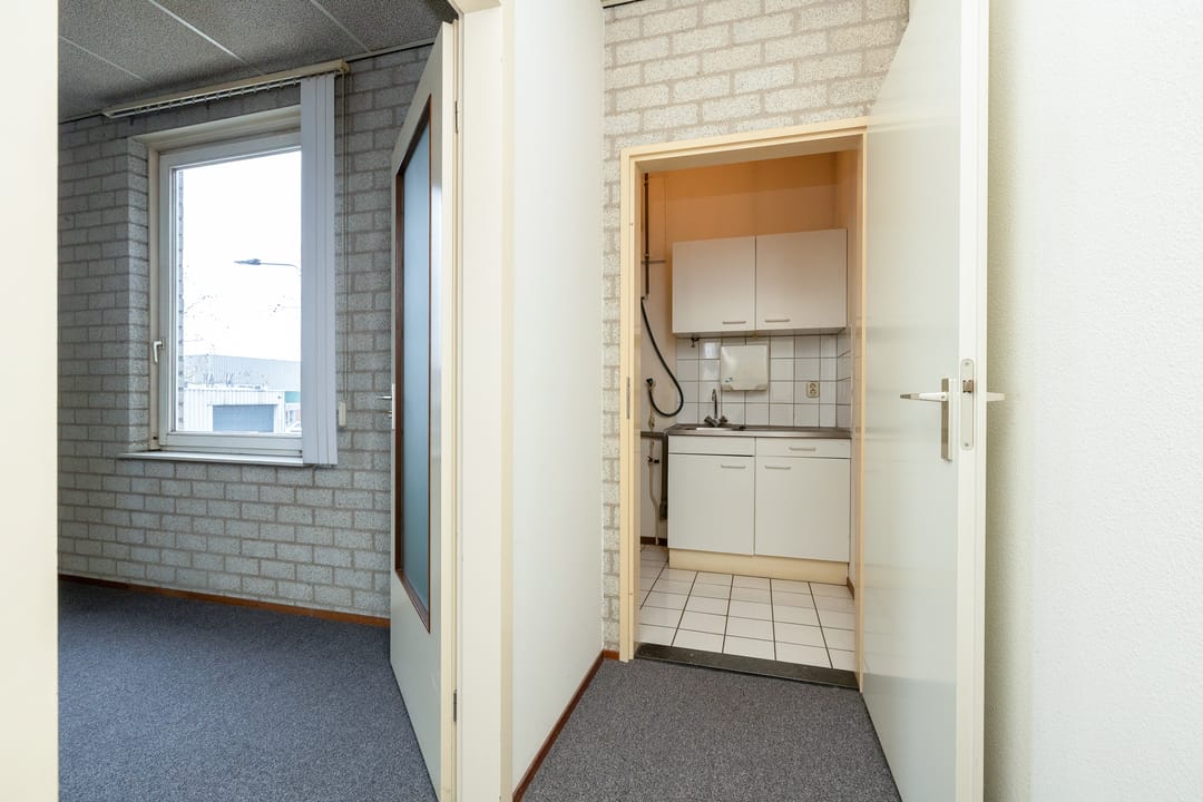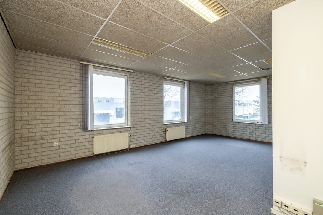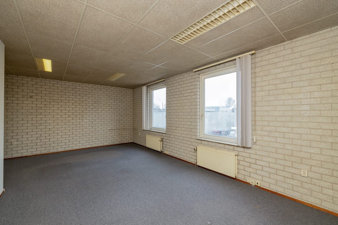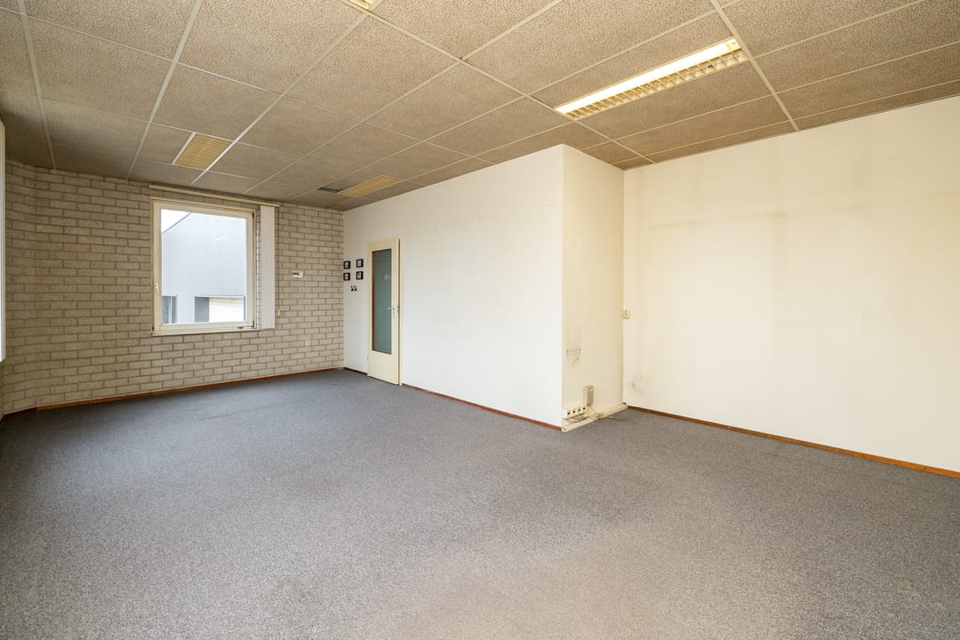Behoudens de bedrijfsruimte is er ook kantoorruimte in het pand aanwezig wat is verdeeld over de begane grond (circa 65 m²) en de eerste verdieping (circa 38 m²). De kantoren zijn functioneel van opzet en afwerking en uitgevoerd met een toilet, een pantry (op de eerste verdieping), verwarming door middel van radiatoren en een systeemplafond met verlichting.