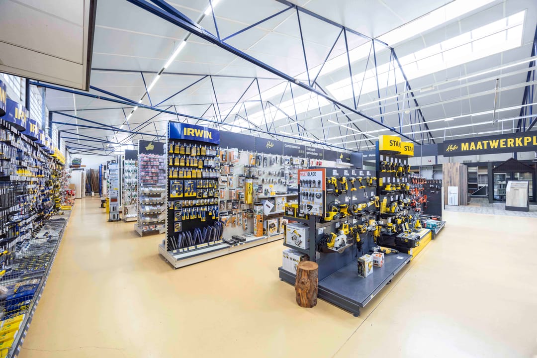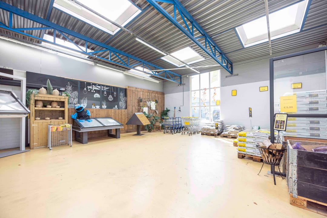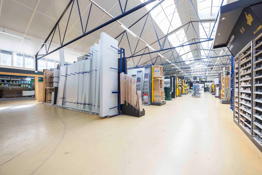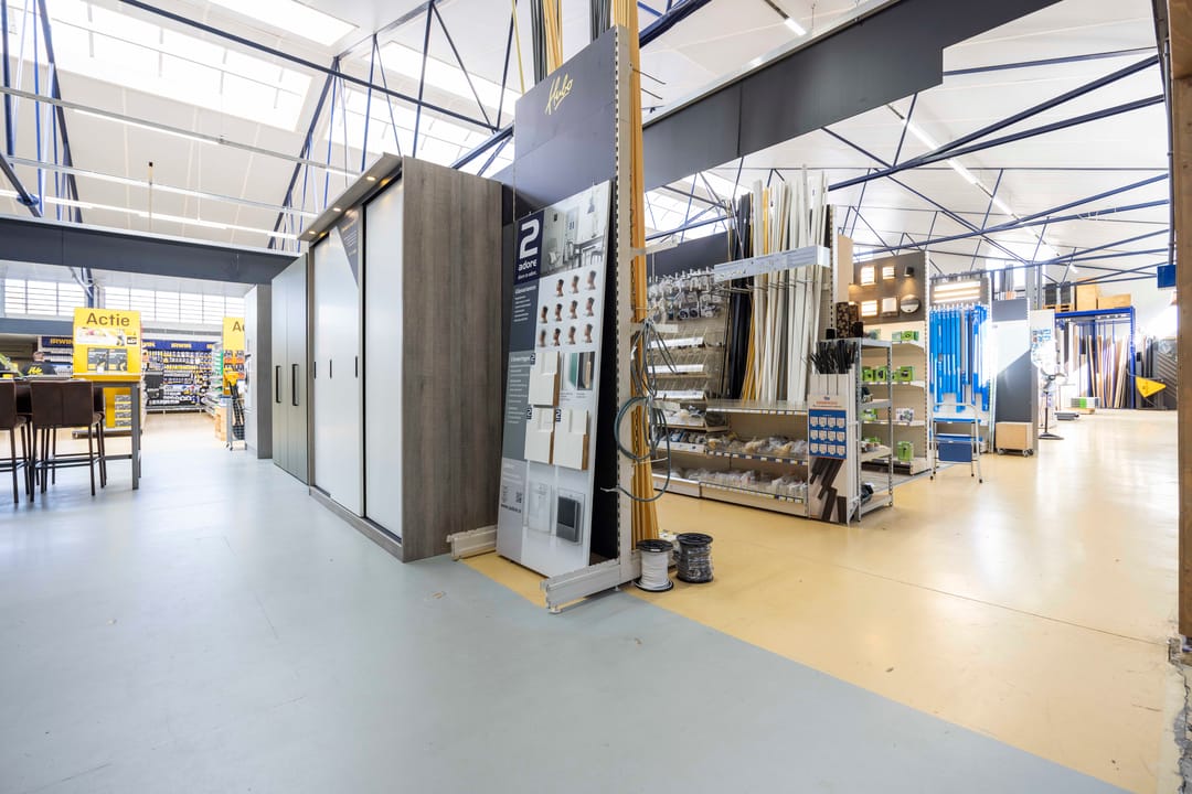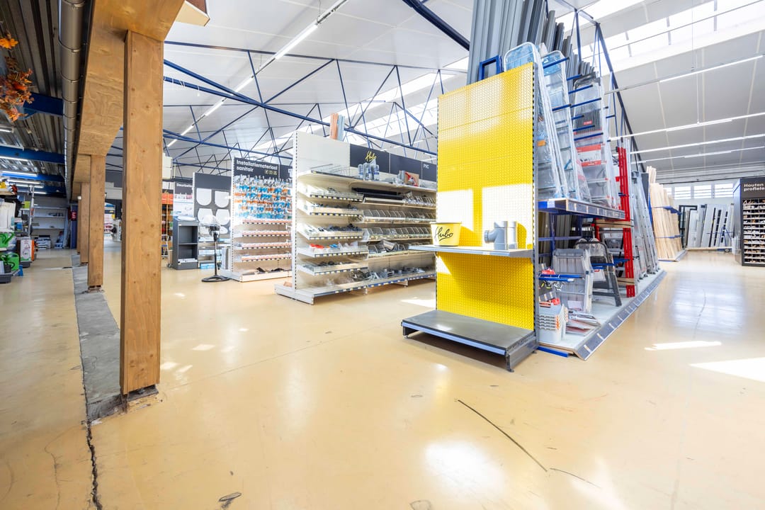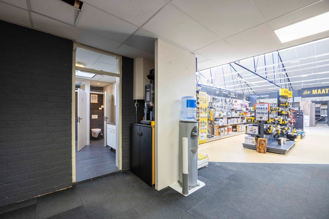Het bedrijfsobject bestaat uit een open bedrijfsruimte die thans in gebruik is als bouwmarkt met kantoorvoorzieningen, inclusief een aanwezige pantry en toiletten.