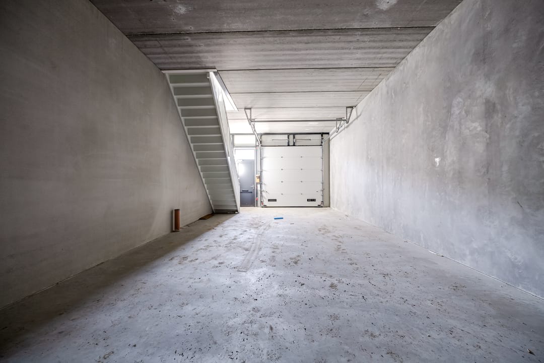 - Overheaddeuren, betonvloer, toilet, pantry, mechanische ventilatie en te openen ramen