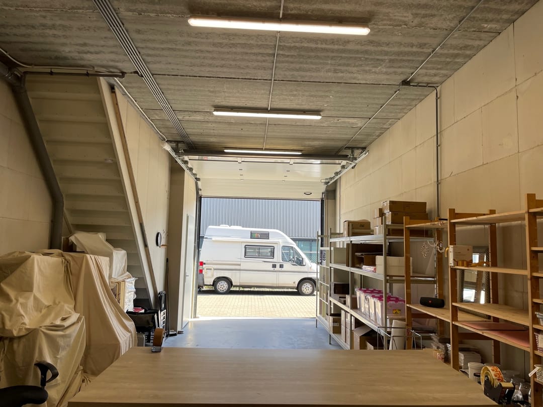 Ruime bedrijfsruimte met betonnen vloer, ideaal voor opslag, werkplaats of lichte productie.