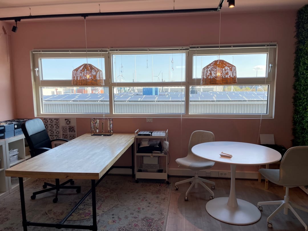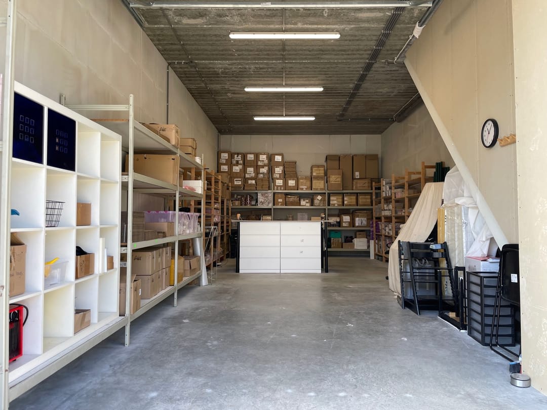 Separaat afsluitbare kantoorruimte en afsluitbare magazijn/opslagruimte.