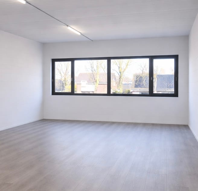 - Airconditioning, overheaddeuren, betonvloer, toilet, pantry, inbouwarmaturen en te openen ramen