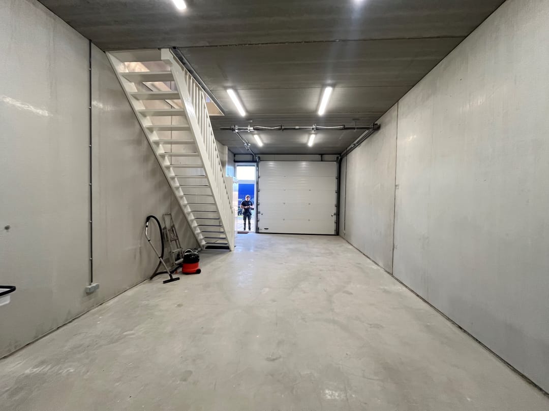De bedrijfsunit van ca. 110m² (bruto vloeroppervlakte) is verdeeld over de begane grond en de verdieping.
