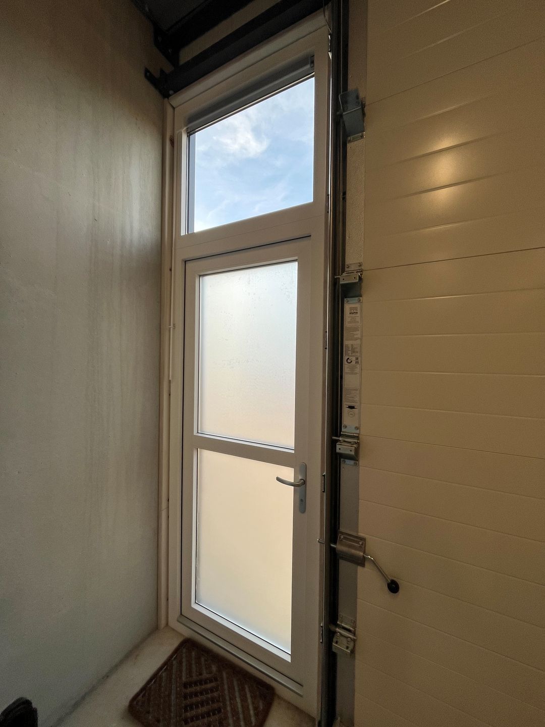 - een geïsoleerde overheaddeur (ca 3,25m hoog x ca 3,5m breed) voorzien van een profielcilinderslot.