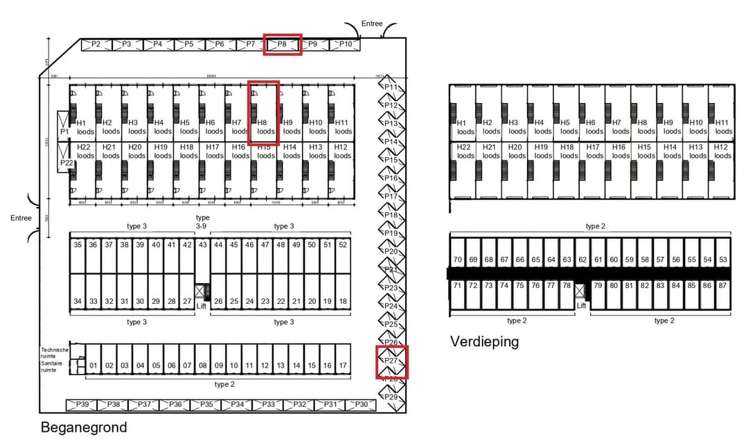 Een tweede parkeerplaats (nr. 27) is apart bij te huren.