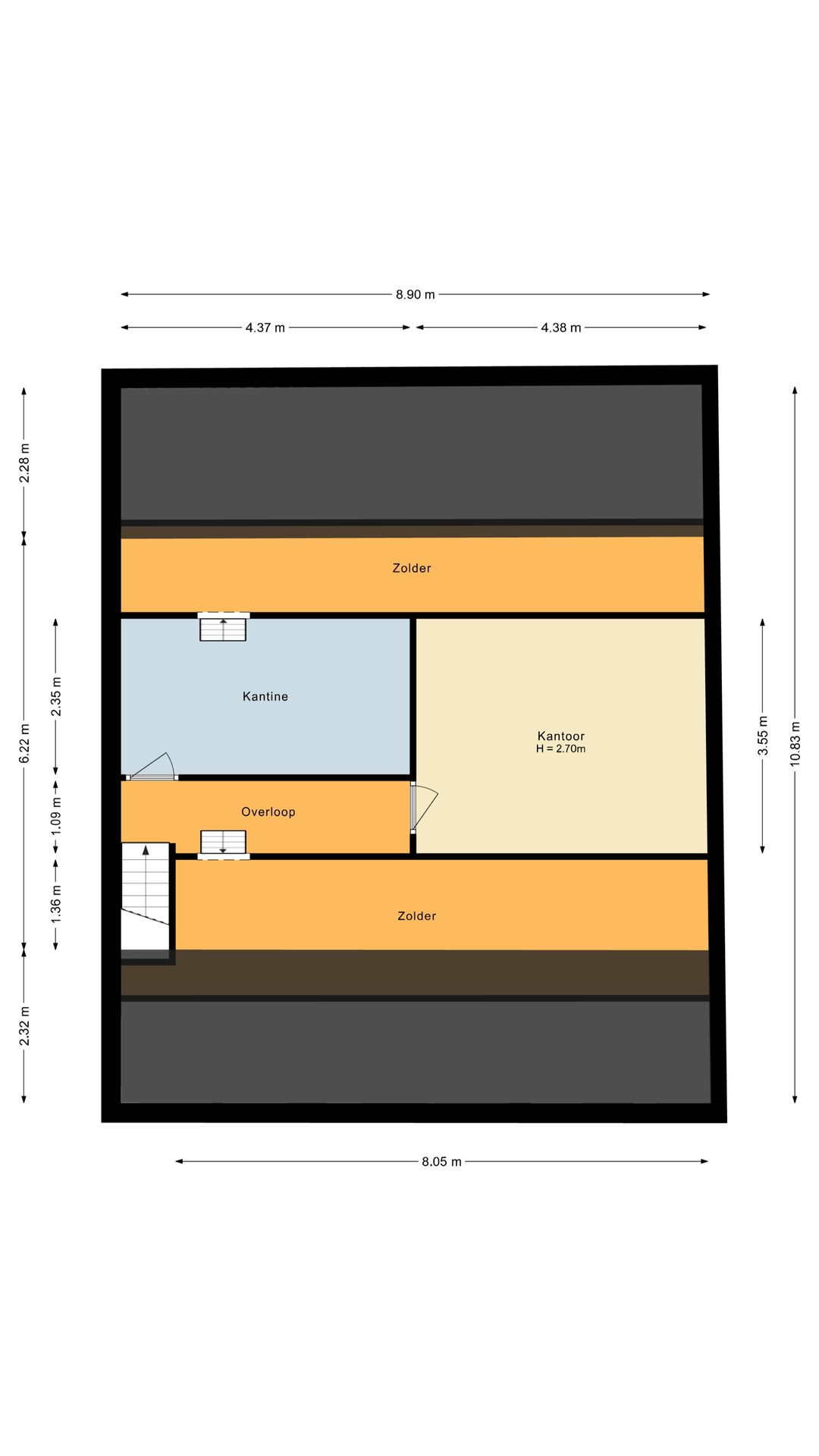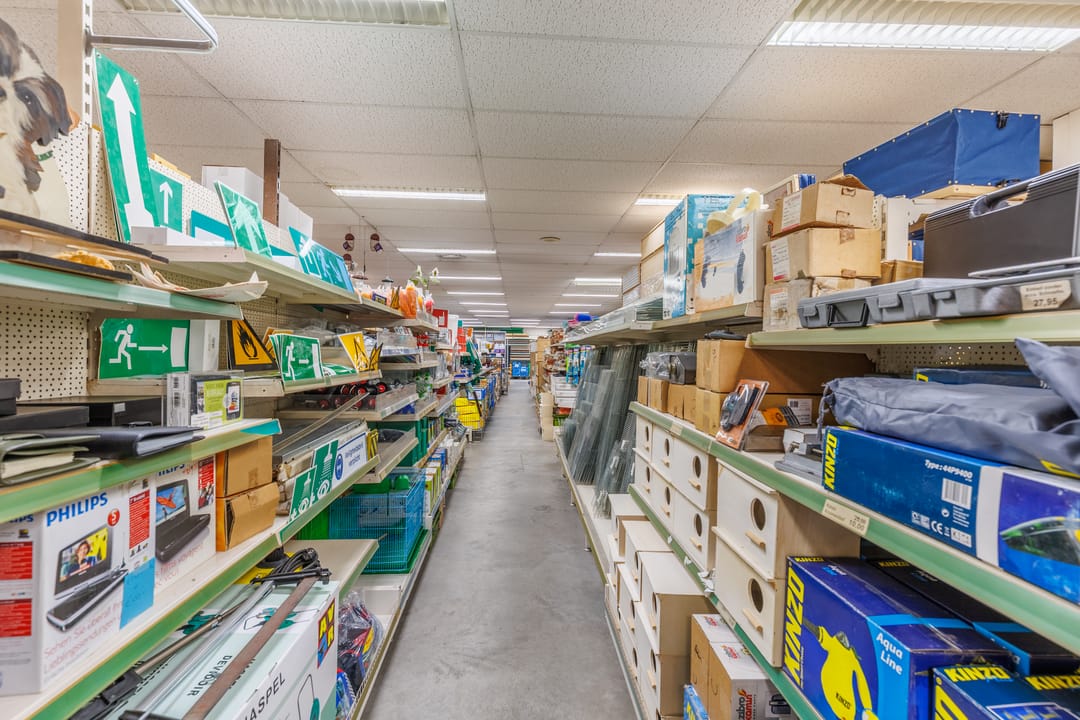 De winkelruimte heeft een tussenverdieping met een kantineruimte, een kantoorruimte en bergzolders. Toegang tot kelder met stahoogte.