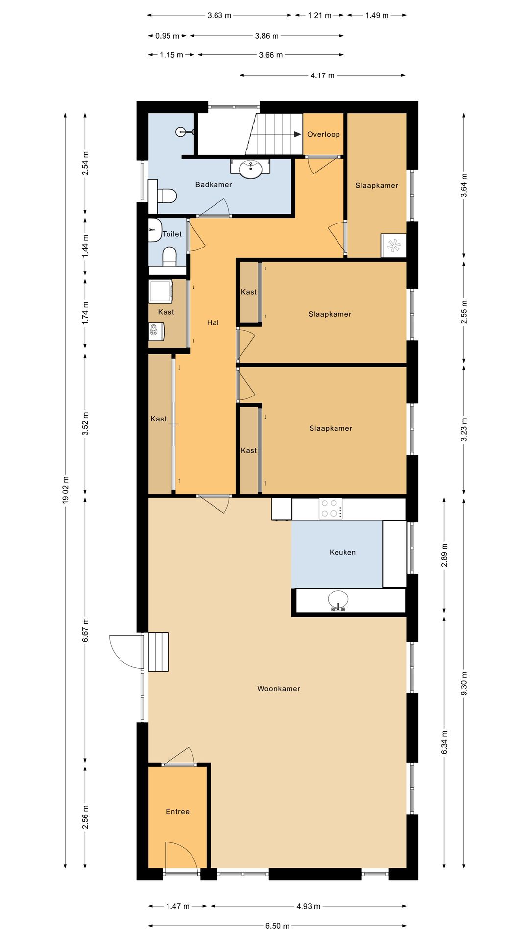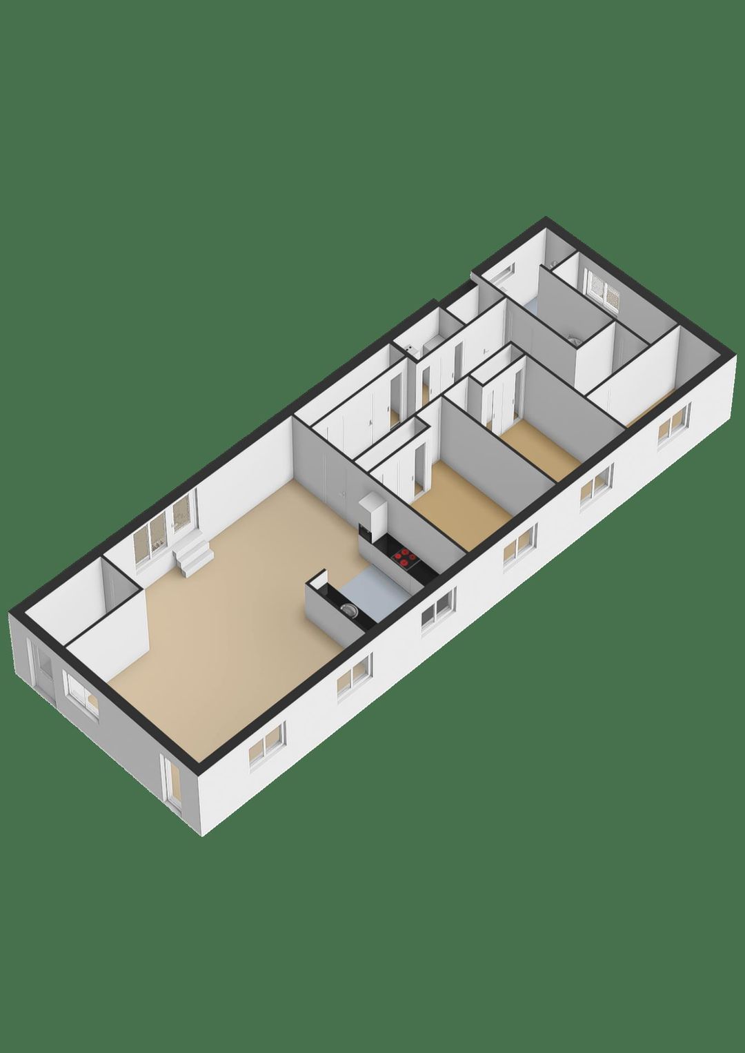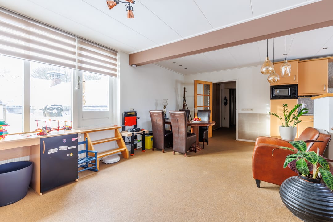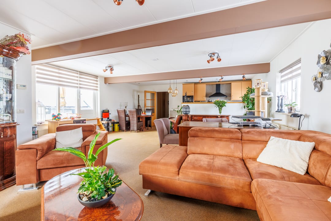 Trapopgang, entree, woonkamer met open keuken, toegang naar platdak (mogelijkheid voor groot dakterras), gang met kastenwand en toegang tot 3 slaapkamers, toiletruimte met wandcloset, badkamer voorzien van douche, 2e toilet en wastafel. Trapopgang naar de winkel-/bedrijfsruimte. De zolderverdieping van de woning heeft stahoogte en is thans bereikbaar doormiddel van een vlizotrap (huidige gebruik als bergzolder). De woning heeft een woonoppervlakte van 124 m² (zonder de zolder).