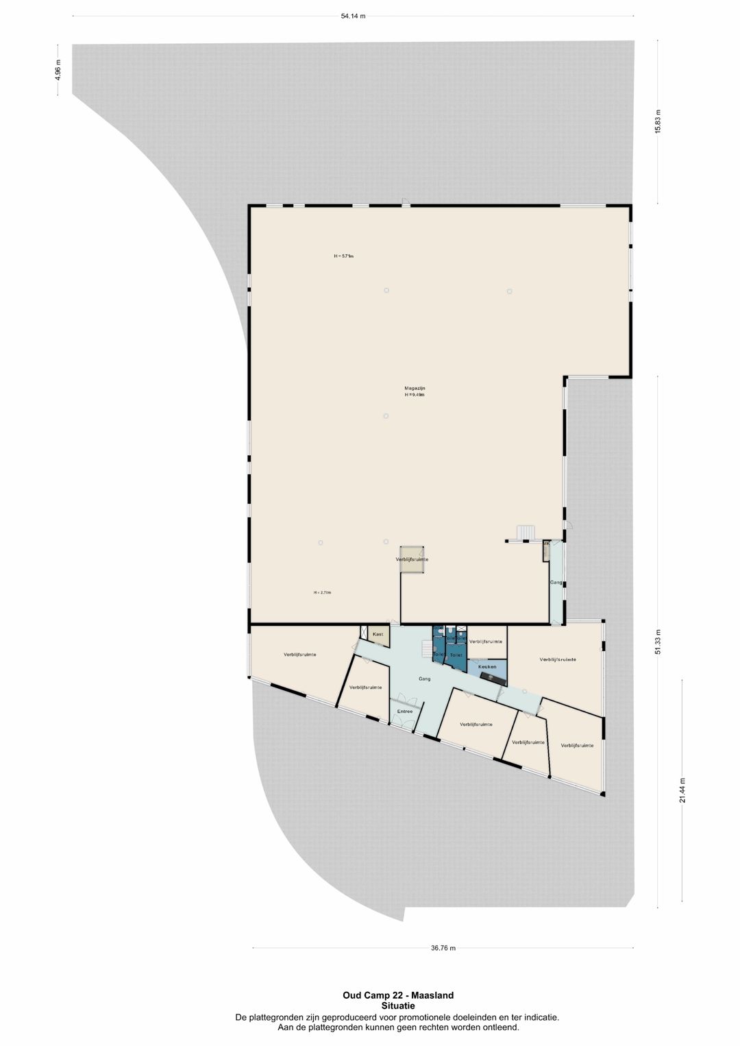 Het bedrijfsgebouw is gelegen op bedrijventerrein “Oud Camp” in Maasland, gemeente Midden-Delfland.