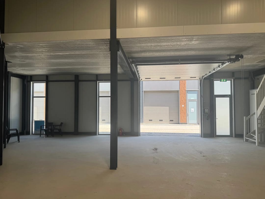 - Overheaddeuren, betonvloer, toilet, pantry, airconditioning en te openen ramen
