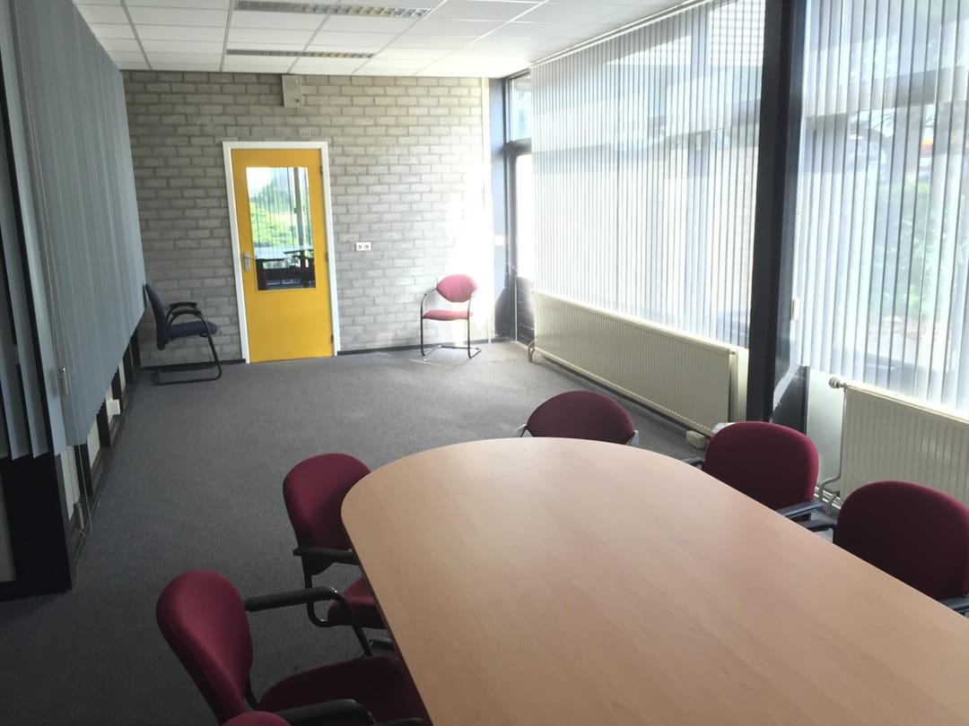 Kantoorgedeelte voorzien van PVC vloer en vloerbedekking.