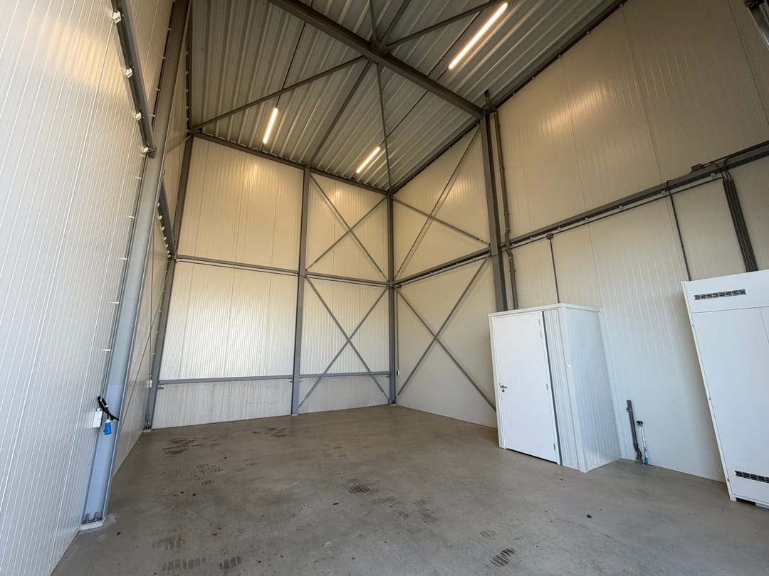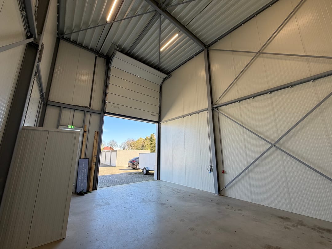 De bedrijfsunit, gerealiseerd in 2021, beschikt over een praktische oppervlakte van circa 66 m² en is ontworpen met oog voor gebruiksgemak en flexibiliteit. Dankzij de vrije hoogte en de royale elektrische overheaddeur en separate loopdeur is het object uitstekend toegankelijk voor diverse bedrijfsactiviteiten, waaronder opslag, werkplaats en lichte productie.
