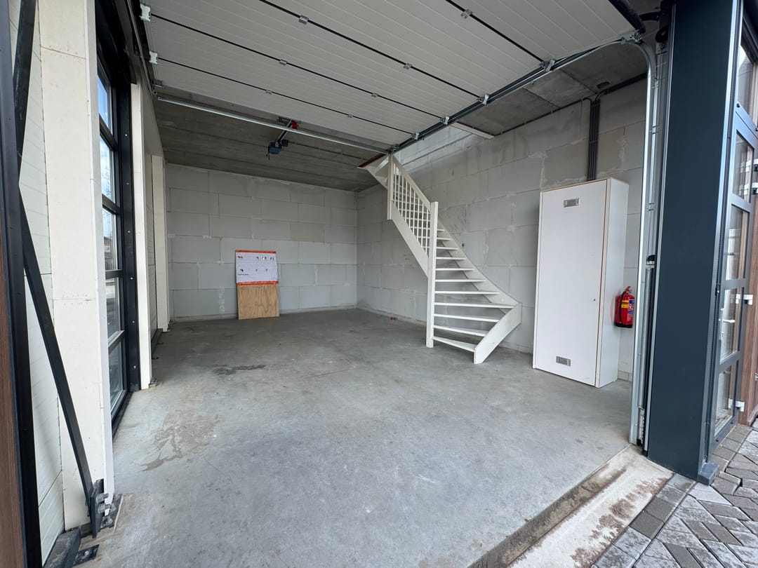 - Overheaddeuren, betonvloer en te openen ramen