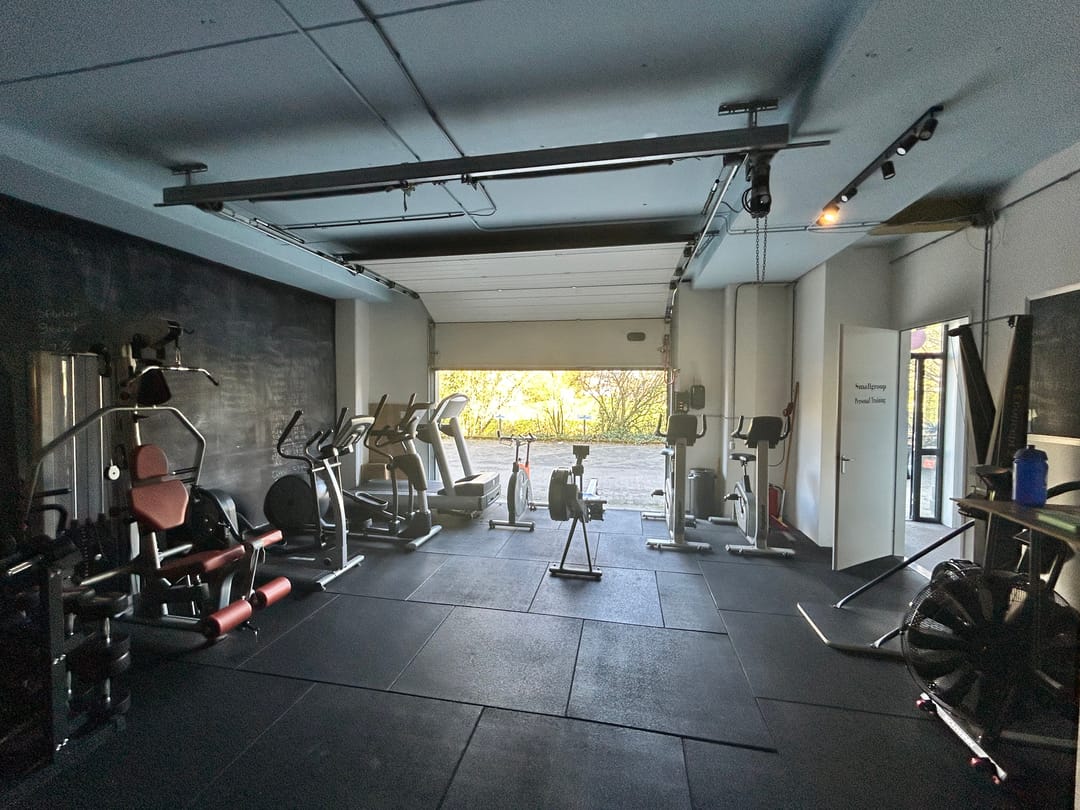 - Overheaddeuren, betonvloer, toilet, pantry, inbouwarmaturen en te openen ramen