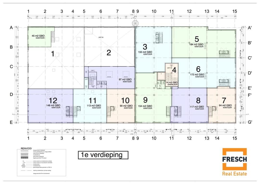 · ca. 155 m² b.v.o. op de verdieping ten behoeve van kantoorgebruik.