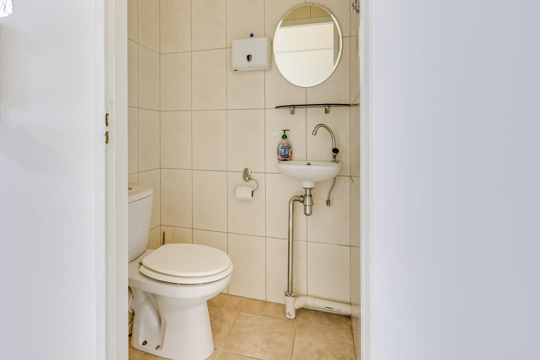 · dubbele toiletruimte met voorportaal v.v. fonteintje en tegelwerk;