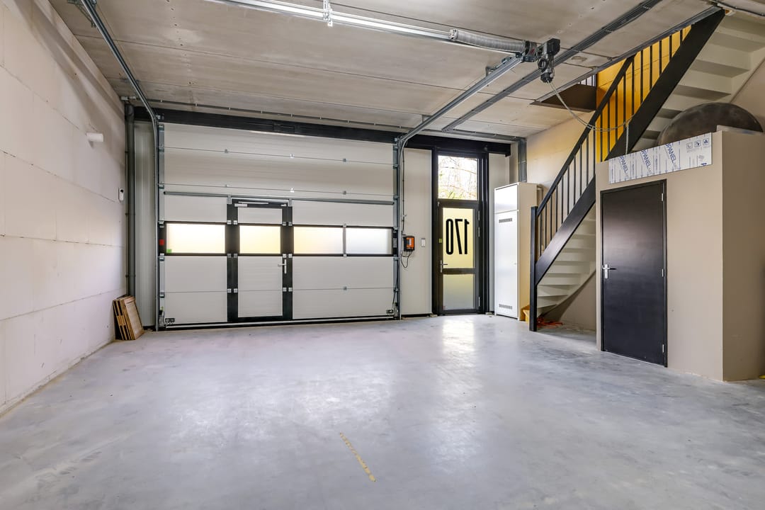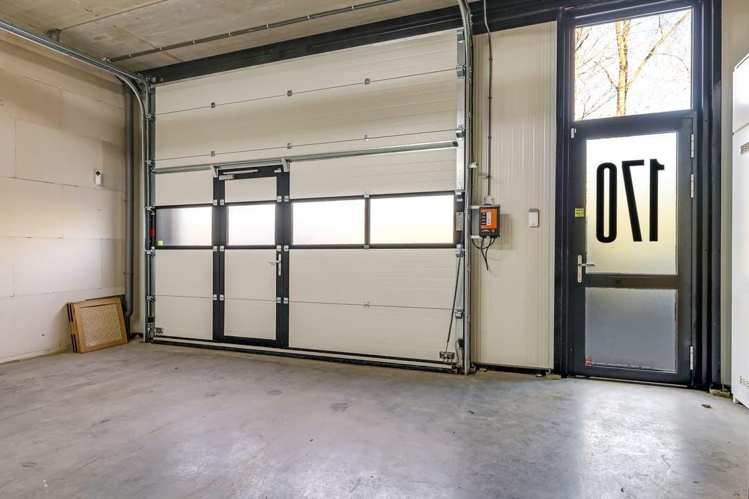 Bedrijfsruimte op de begane grond met overheaddeur en loopdeur.