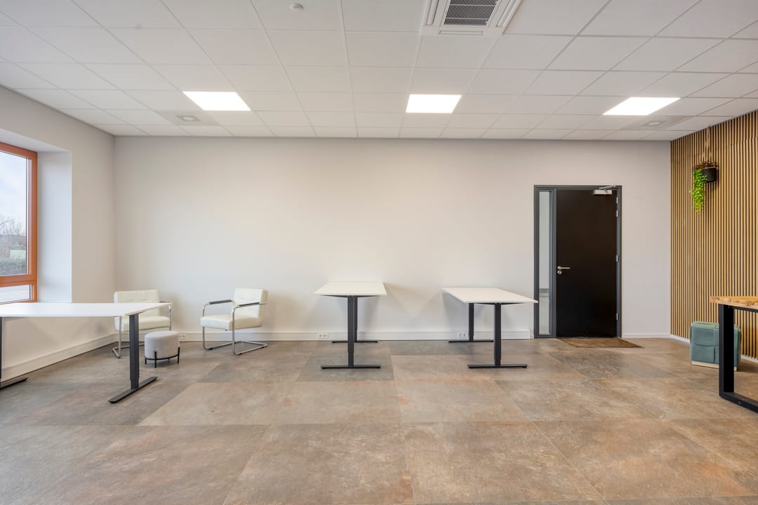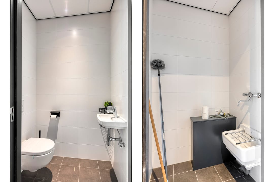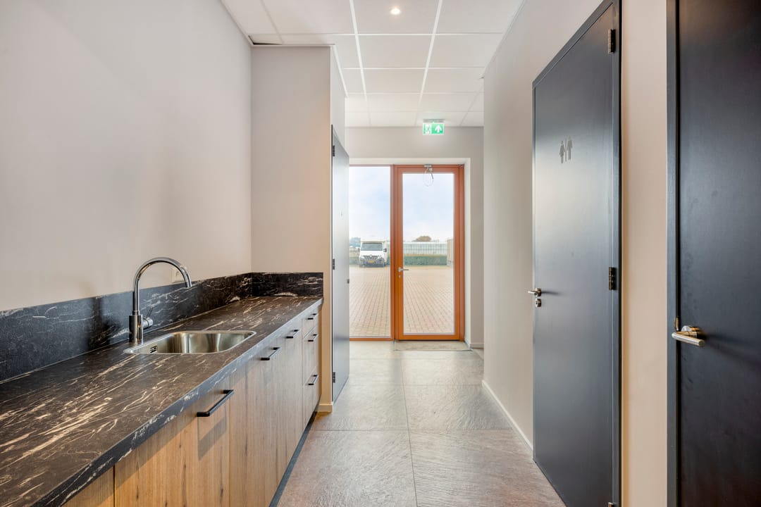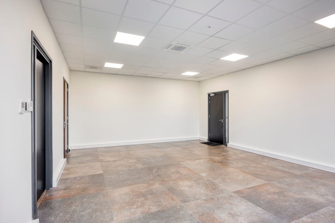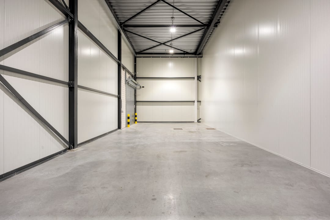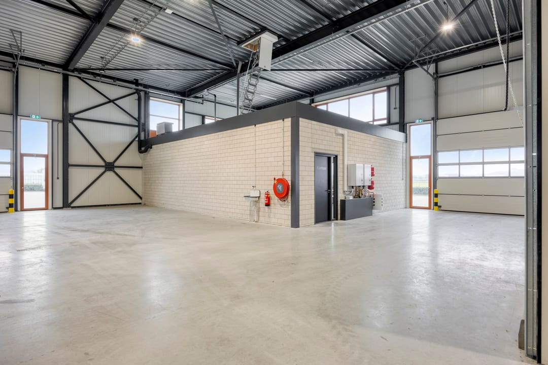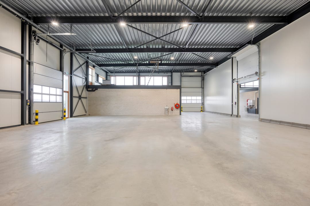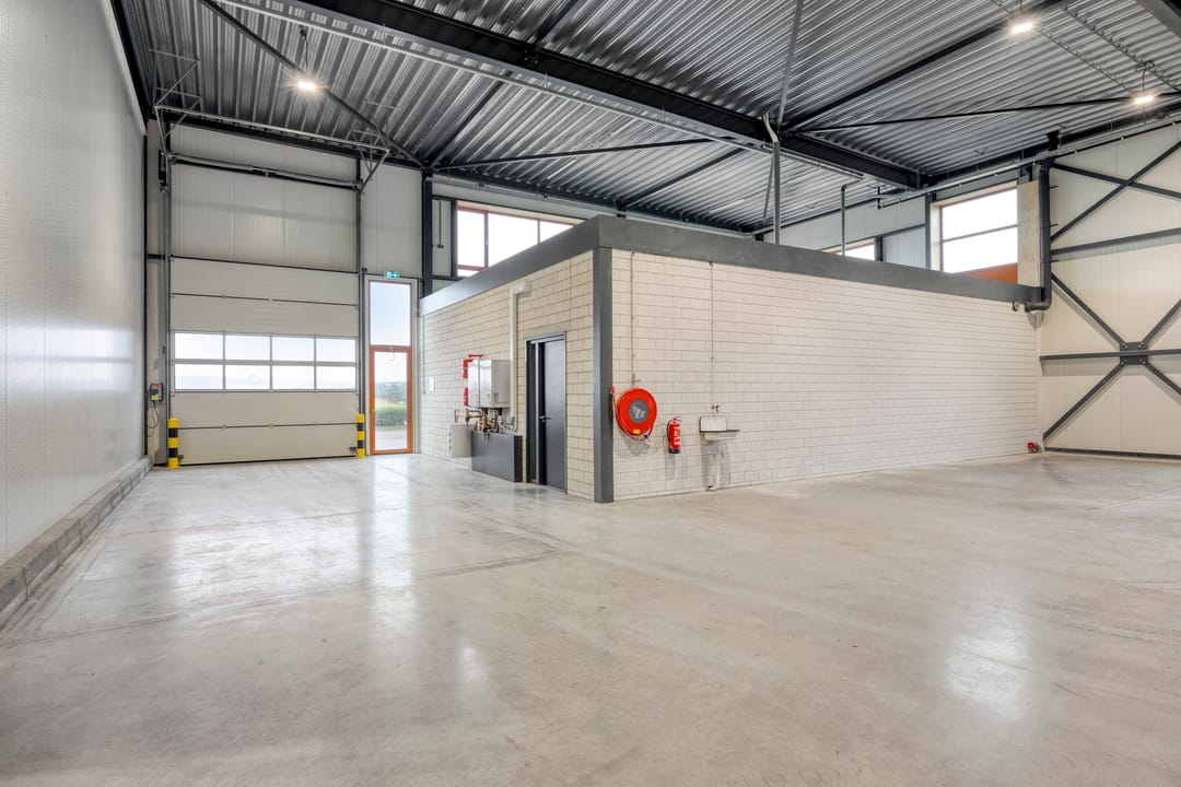 - Overheaddeuren, krachtstroom, betonvloer, toilet, pantry, topkoeling, inbouwarmaturen en te openen ramen