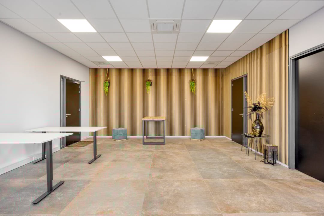 Indien gewenst kunnen beide units worden samengevoegd. De totale bedrijfsruimte heeft in dat geval een grootte van 1096 m² en 216 m² kantoren en andere ruimtes.