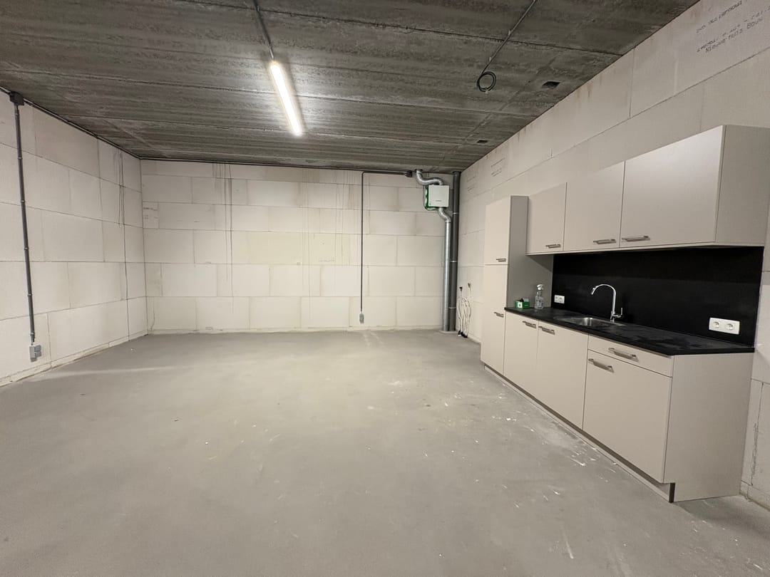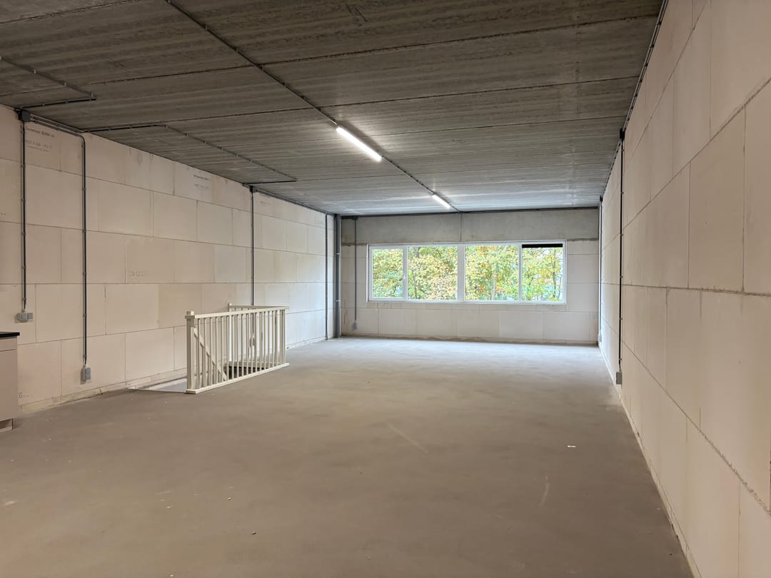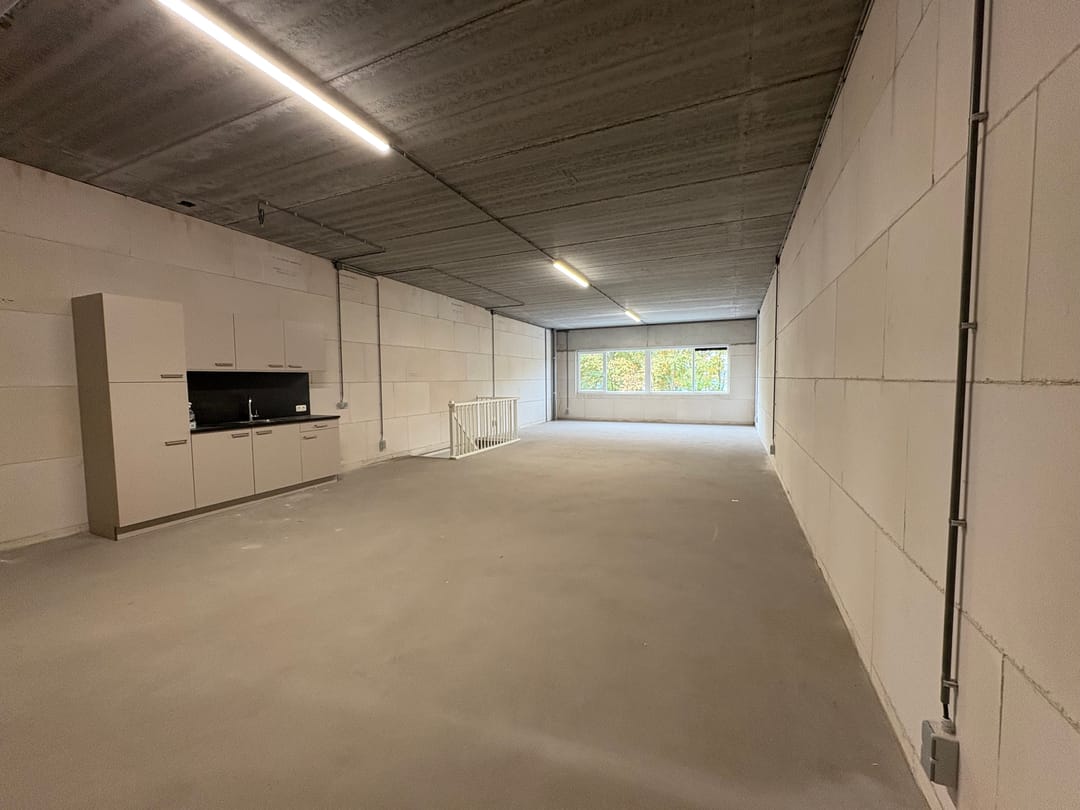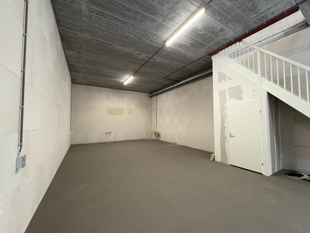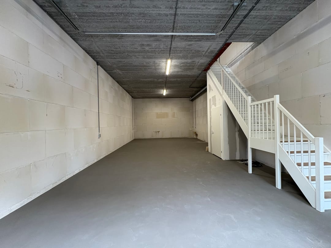 - Overheaddeuren, betonvloer, toilet en pantry