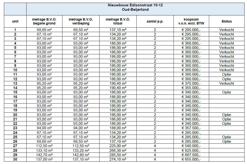- indien mogelijk worden de units aangesloten op glasvezel; de aansluitkosten zijn voor rekening van de koper.