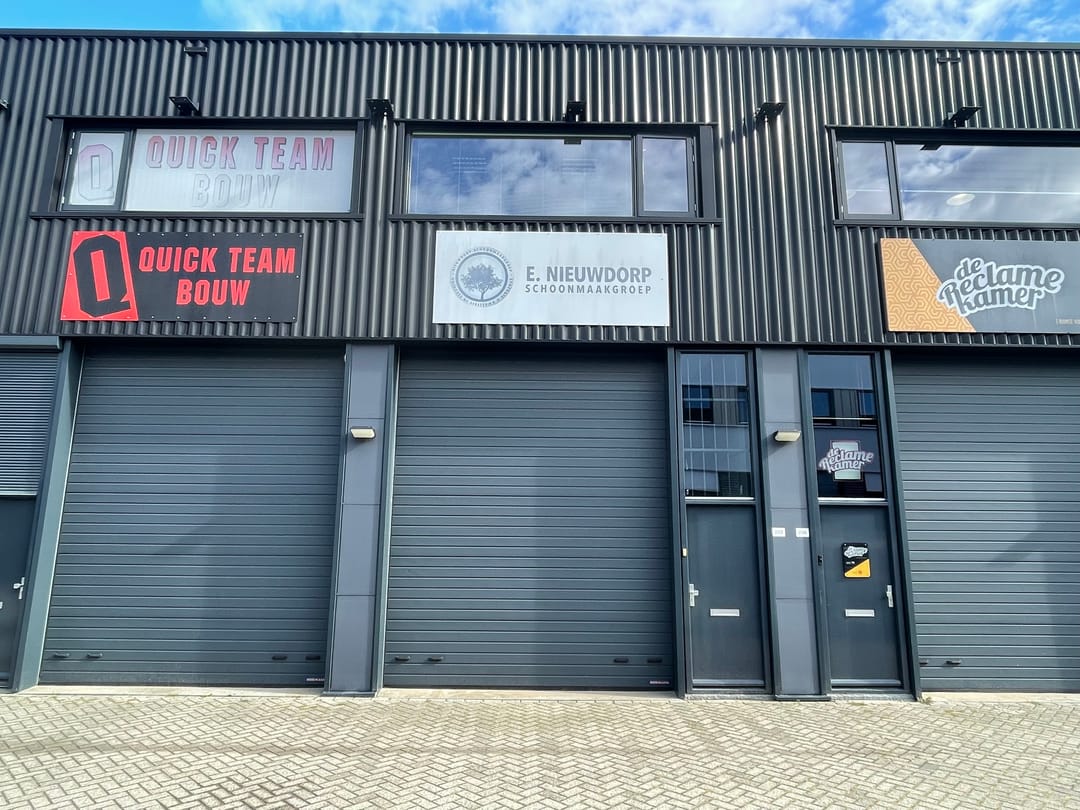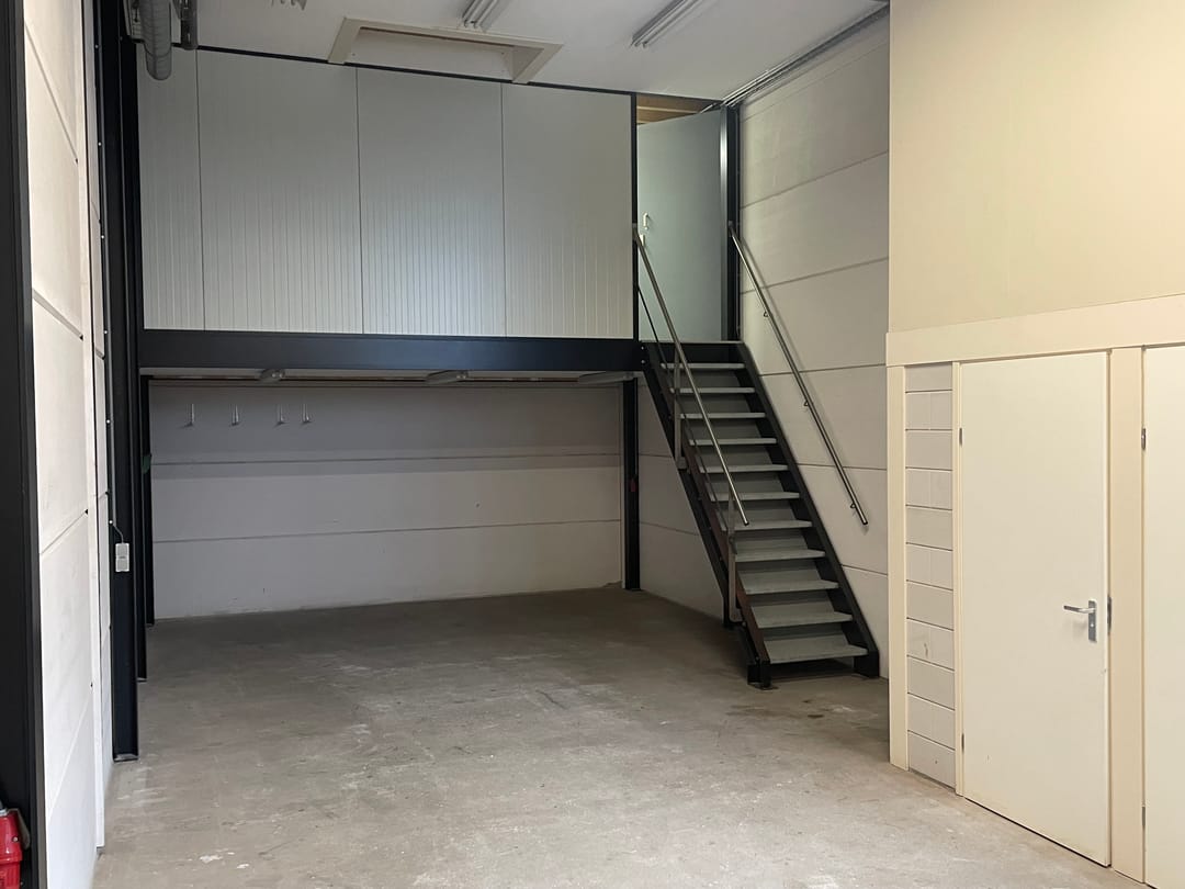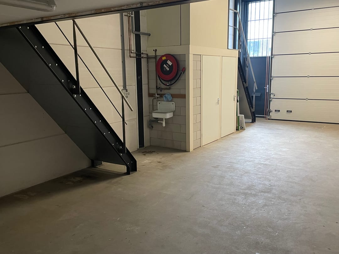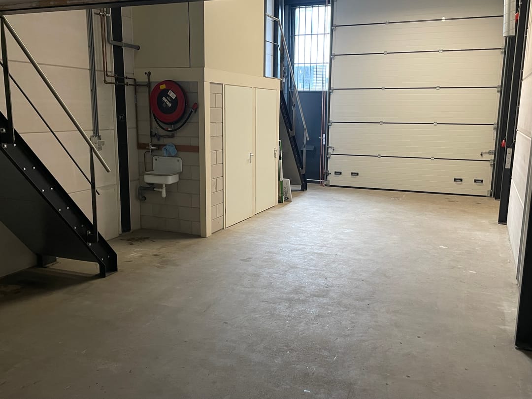 - Overheaddeuren, krachtstroom, betonvloer, toilet, pantry, inbouwarmaturen en te openen ramen