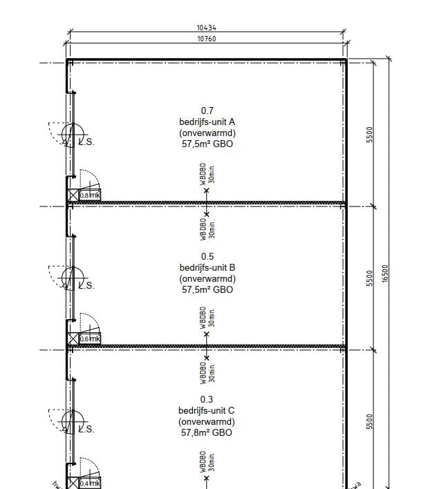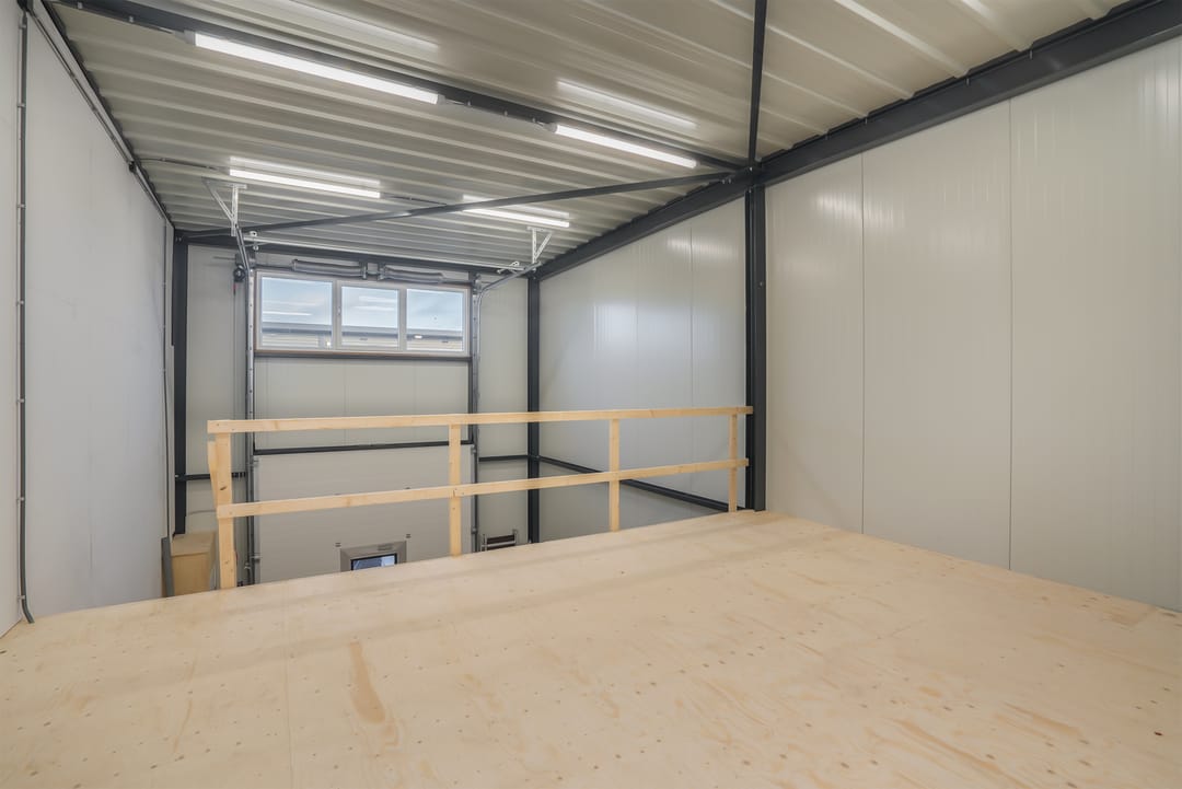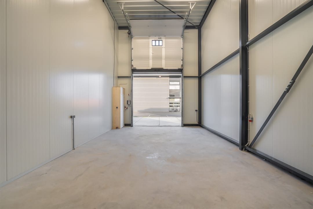 Daarnaast beschikt de unit over een toilet, voorbereiding voor toekomstige glasvezelaansluiting, krachtstroom punt, 3 x 25 ampère aansluiting in de meterkast en een elektrische overheaddeur.