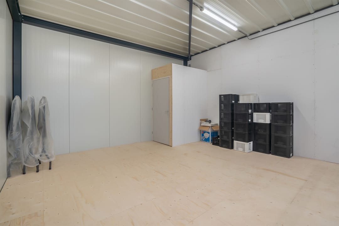 Deze keurige, goed geïsoleerde bedrijfsunit is met een vrije hoogte van 7 meter voor iedere soort onderneming en hobby geschikt! De unit is voorzien van een gevlinderde betonvloer, houten verdiepingsvloer, geïsoleerde wanden, geïsoleerd plafond en een kozijn in de voorgevel voor extra lichtinval in de bedrijfsruimte.