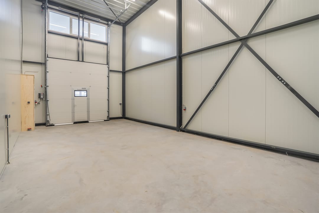 - Overheaddeuren, krachtstroom, betonvloer en toilet