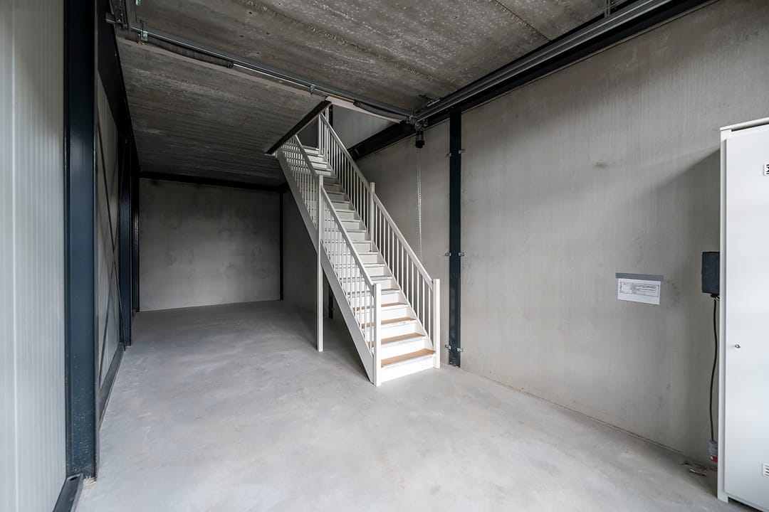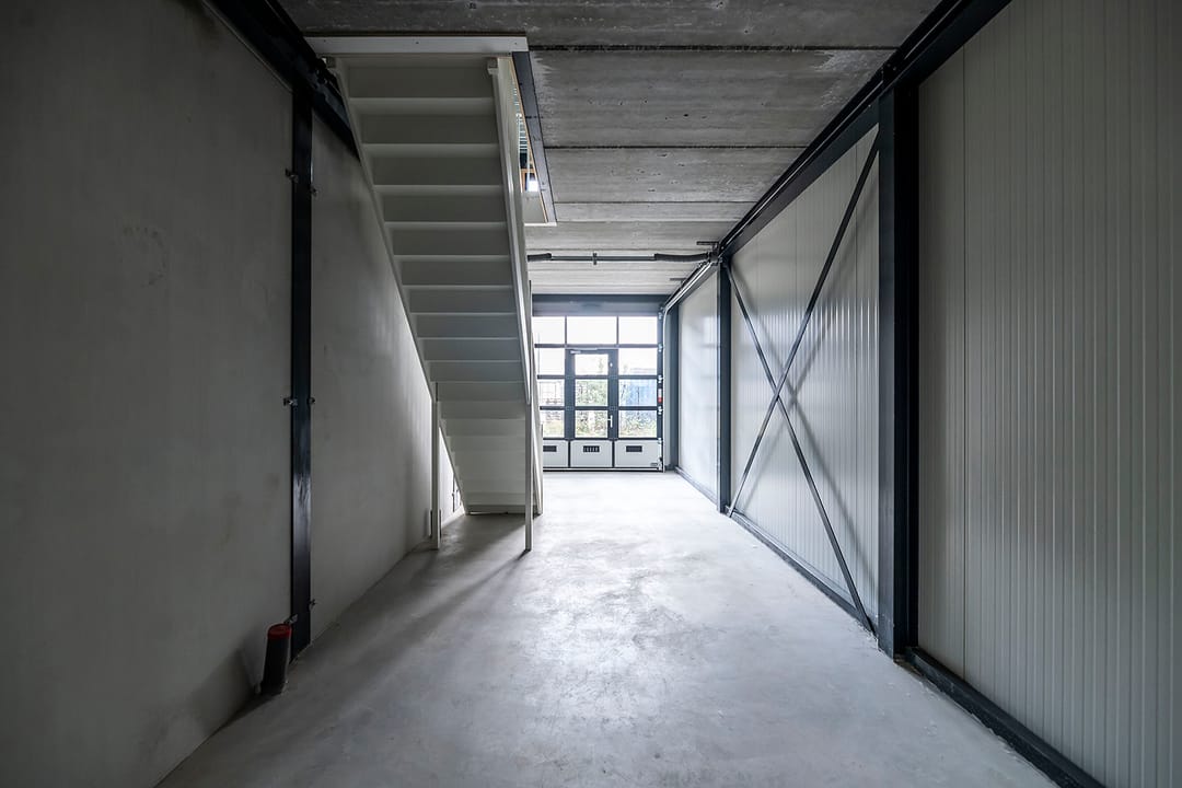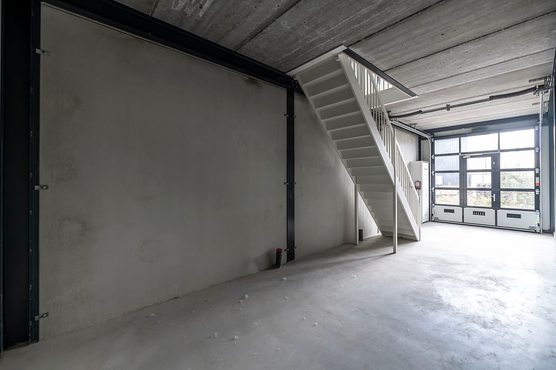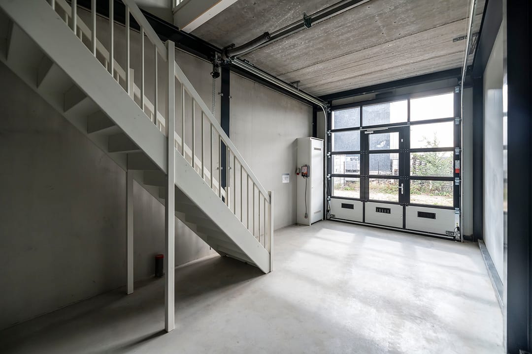 - Overheaddeuren, krachtstroom, betonvloer en te openen ramen
