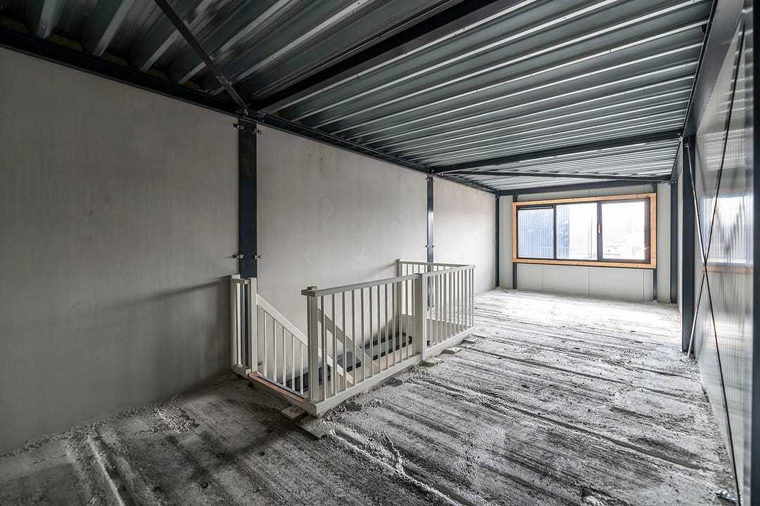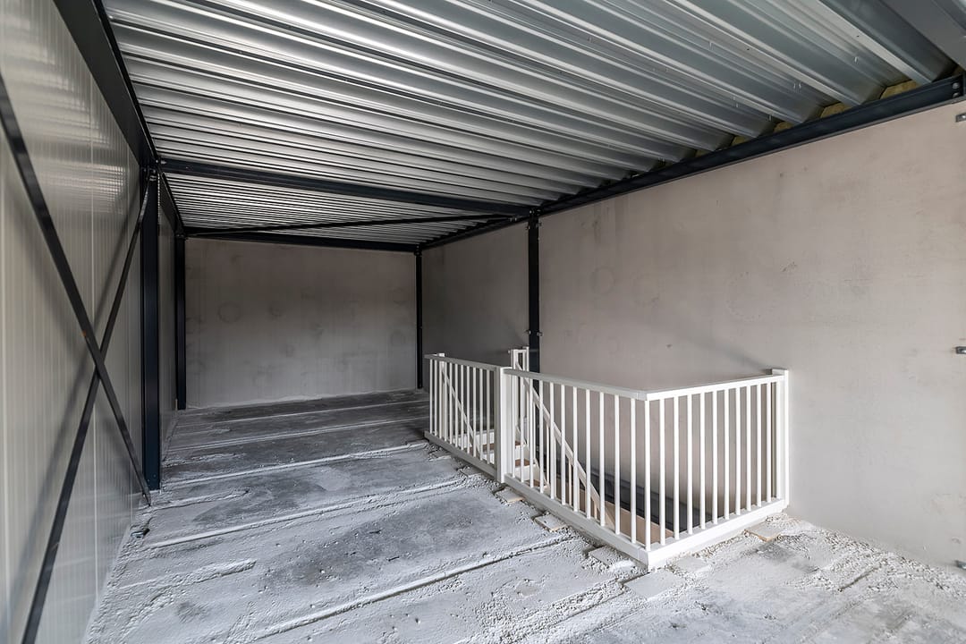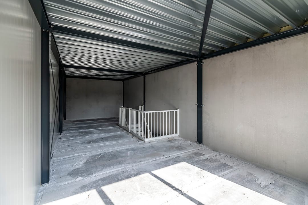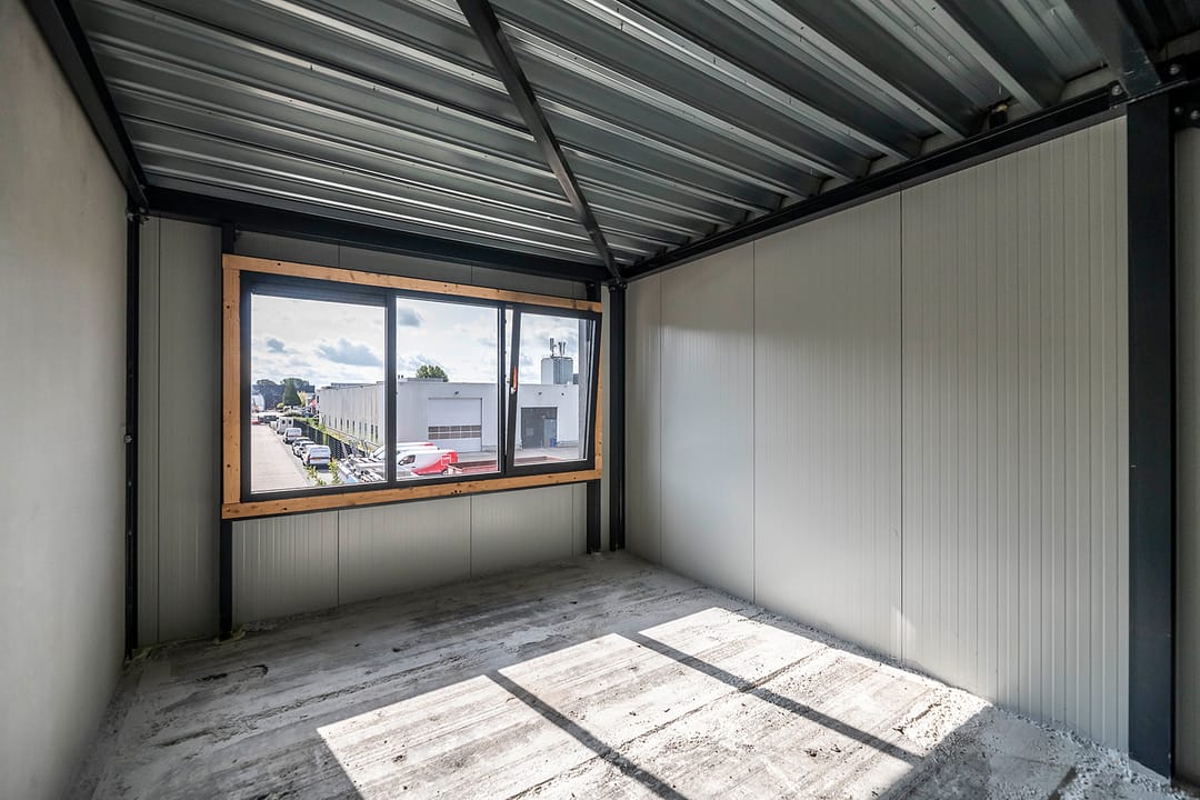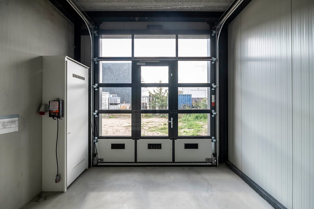 - Overheaddeuren, krachtstroom, betonvloer en te openen ramen