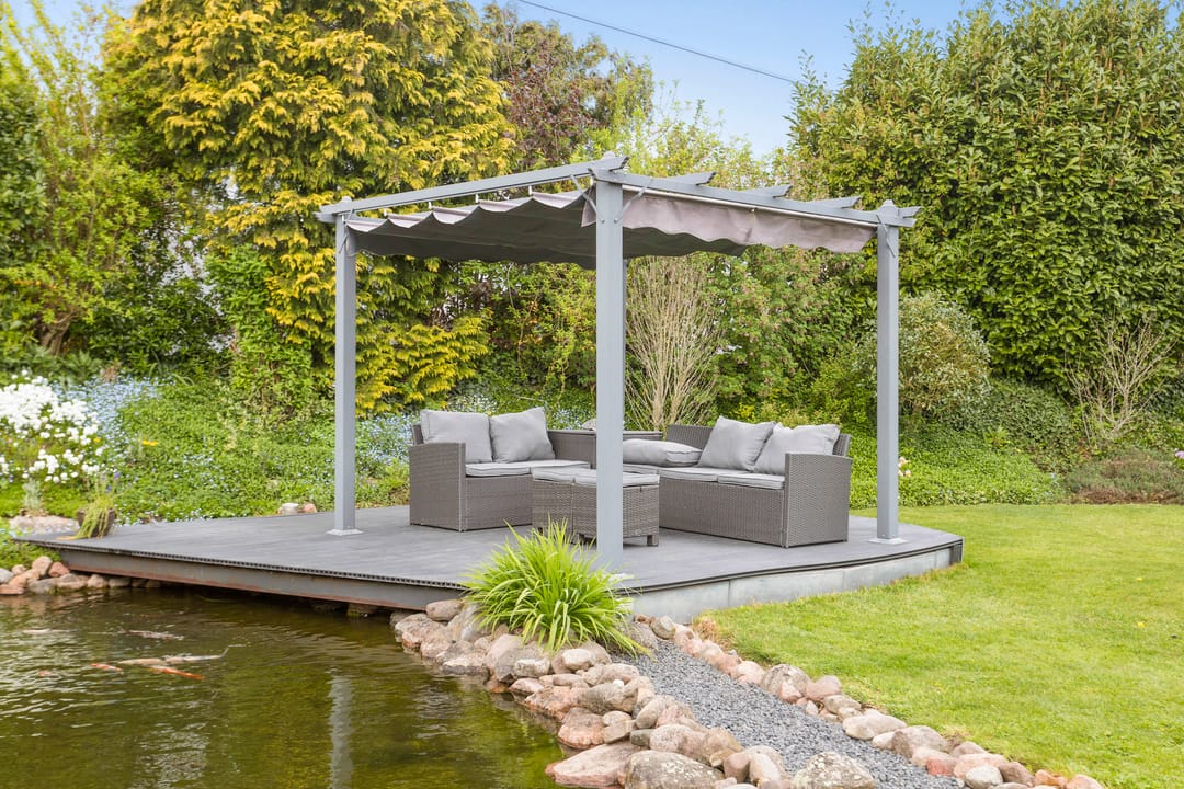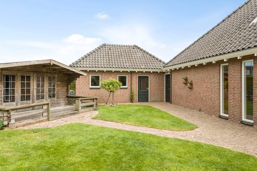 Optimale vrijheid De rondom gelegen tuin is met zorg aangelegd en biedt verschillende terrassen waar u in alle rust van de zon kunt genieten. De grote vrijstaande garage met bergzolder is een verlengstuk van uw werkgemak.