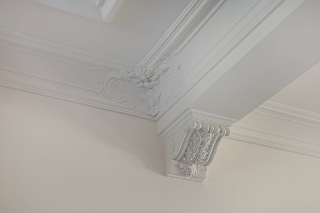 • Hoogwaardige decoratieve stuclijsten rond deuren en plafonds