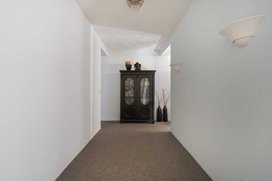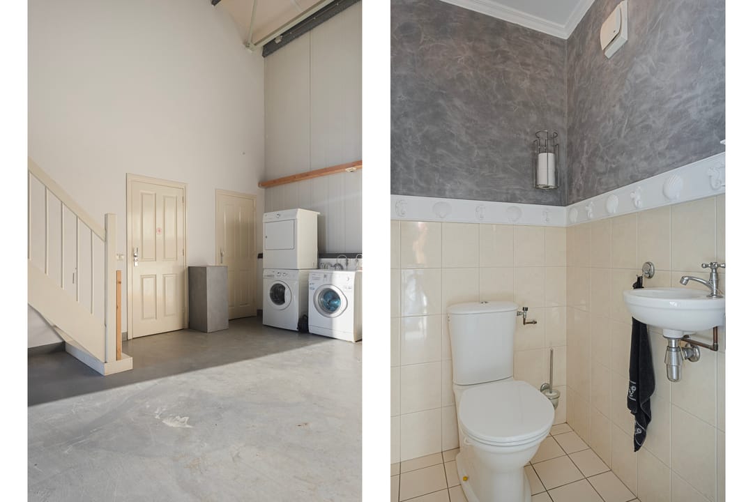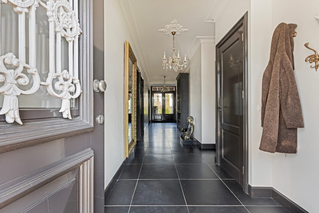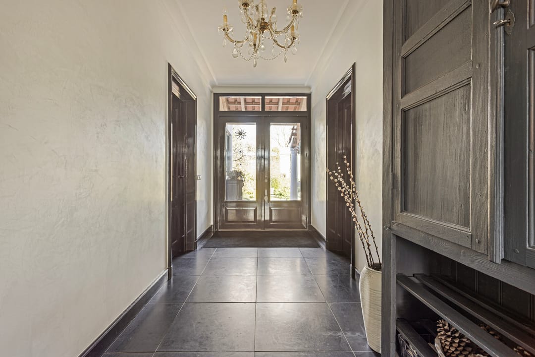 Via de overkapte entree betreedt u de royale hal die zich uitstrekt over de volledige diepte van de woning. Hier bevinden zich de meterkast (14 groepen, 3-fasenaansluiting en krachtstroom), een praktische opbergkast met wastafel en boiler, alsmede een luxe toilet met hangcloset, urinoir en fonteintje.