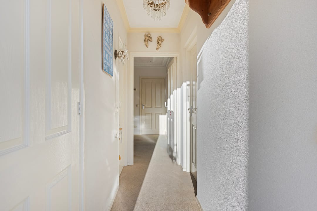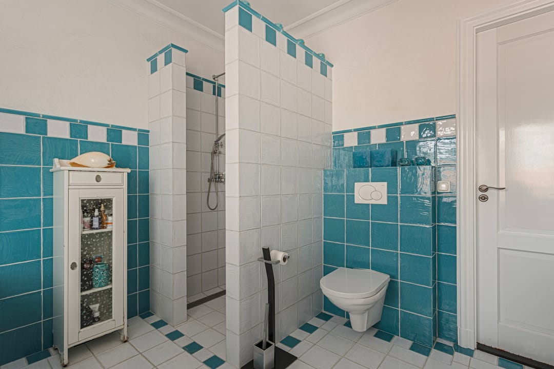 De overloop biedt toegang tot een praktische wasruimte en is voorzien van airconditioning. De master bedroom aan de voorzijde beschikt over dubbele deuren naar een balkon. Aan de achterzijde bevinden zich twee ruime slaapkamers, waarvan één met toegang tot het platte dak. De moderne badkamer is compleet uitgerust met vloerverwarming, ligbad, inloopdouche, dubbele wastafel, toilet, verwarmde spiegel en designradiator.