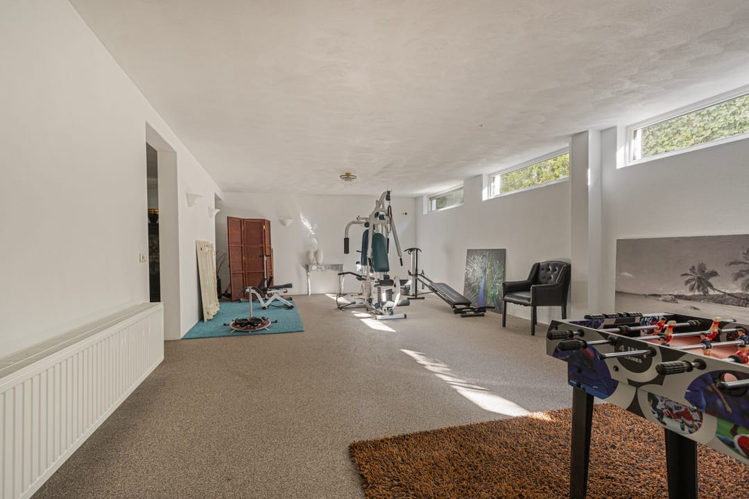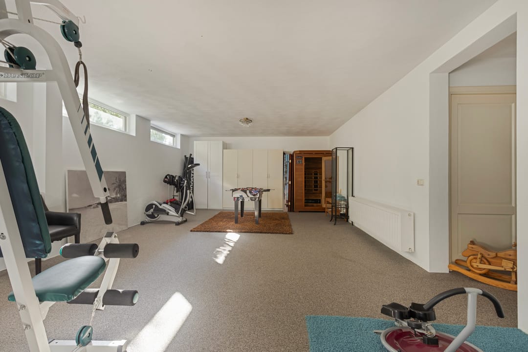 Het souterrain vormt een volwaardig onderdeel van de woning en beschikt over meerdere functionele ruimtes, allen voorzien van daglicht dankzij ramen net boven maaiveldniveau. Hier vindt u een inpandige garage van circa 32 m² met elektrische deur, waarbij de inrit verwarmd kan worden bij sneeuwval. Daarnaast zijn er een voorraadruimte, een tussenhal en een indrukwekkende sport-/ werk-/ vrijetijdsruimte van circa 56 m². Garage en vrijetijdsruimte zijn voorzien van verwarming.